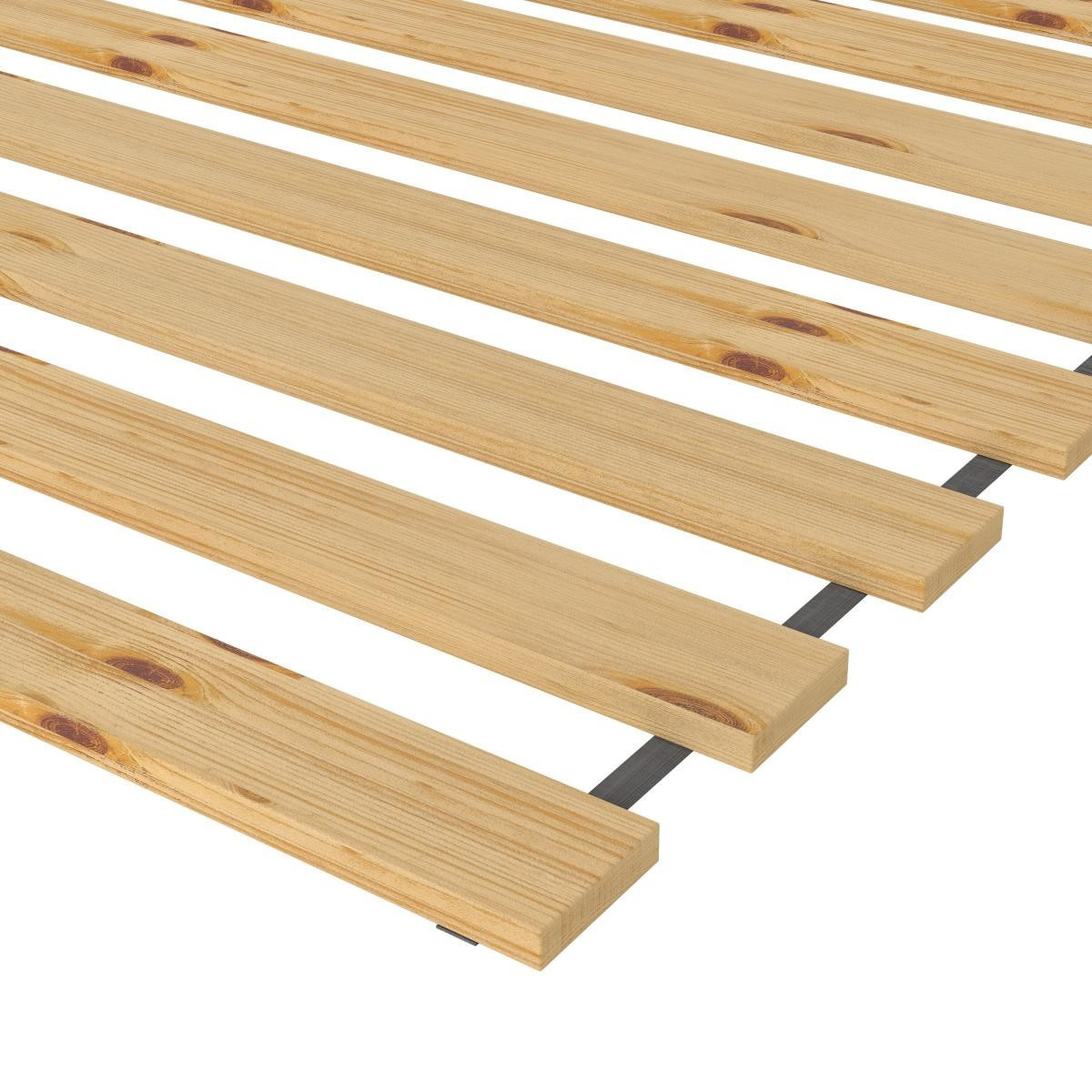 Pevný rošt z masivních dřevených latěk o tlouštce 1,5 cm je vhodný pro rámové postele. Zajišťuje stabilní oporu matrace a umožňuje cirkulaci vzduchu.