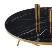 Rozměry: - deska: průměr 80 cm - výška: 39 cm Materiál: - deska: sklo - základna: chromovaný kov Barva: - deska: černý mramor - základna: zlatá