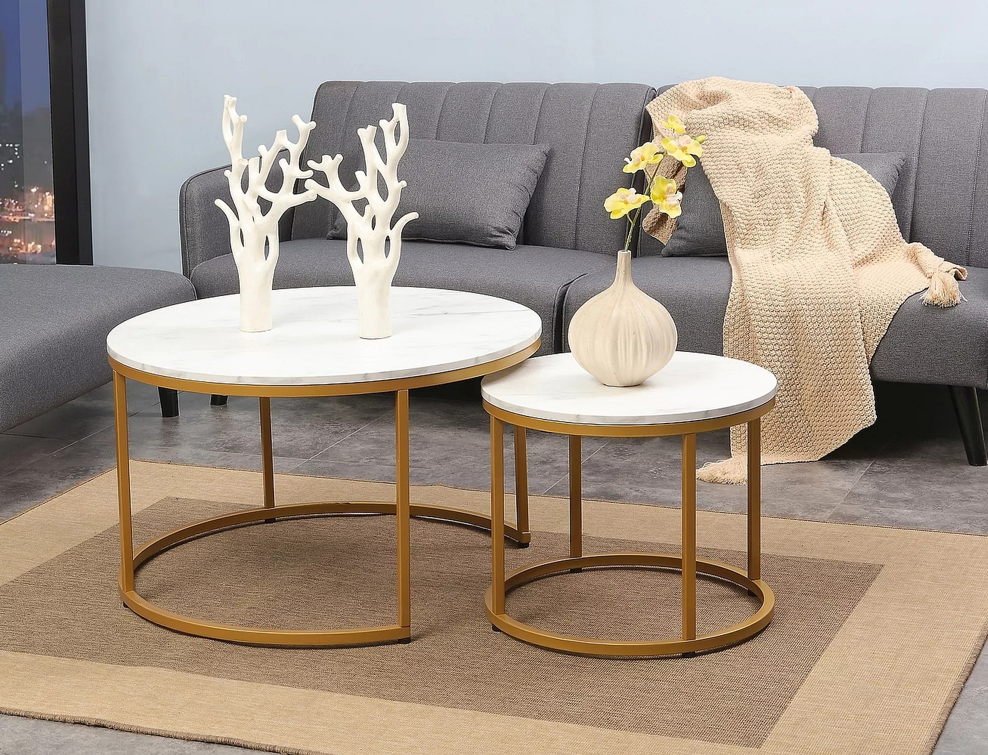Konferenční stůl DION, efekt bílého mramoru/Zlatá