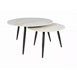 Set konferenčních stolků KORA D je vyroben z vysoce kvalitní keramiky a kovu, což zajišťuje jeho dlouhou životnost a odolnost. Keramická deska stolu je nejen esteticky přitažlivá, ale také praktická, protože je snadno udržovatelná a odolná vůči poškrábání. Kovová konstrukce v černém matu dodává stolku moderní a industriální vzhled, který se hodí do každého moderního interiéru.