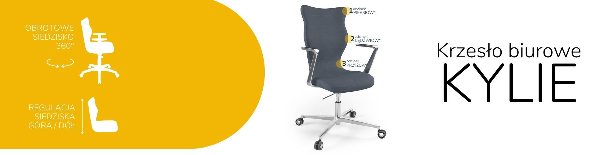 Moderní židle Kylie je praktickým a elegantním řešením přizpůsobeným potřebám moderní kanceláře. Při dlouhé práci vsedě jsou velmi důležité správné podmínky. Optimální držení těla je naprosto zásadní, ale důležité jsou také otázky, jako je vzdálenost od monitoru a časté změny polohy. Kancelářská židle Kylie, kterou nabízíme, vám umožní efektivně se postarat o všechny tři aspekty najednou. Tím se zvyšuje naše výkonnost a výrazně se snižují negativní účinky sedavého zaměstnání.