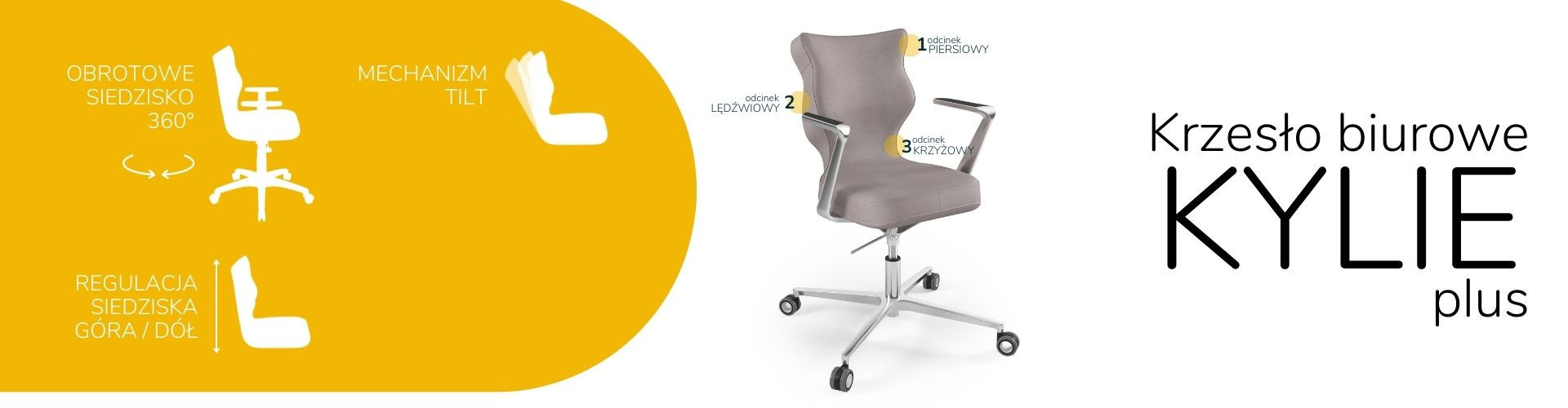 Sedák a opěradlo kancelářské židle Kylie jsou navíc speciálně tvarované podle přirozeného tvaru páteře. Když zaujmeme polohu u počítače, přenáší se většina váhy z páteře na židli. Tento mechanismus je důležitý zejména při dlouhé pracovní době, kdy nemáme možnost udělat si přestávku a "protáhnout" si končetiny. Kancelářská židle Kylie přirozeně podporuje správné držení těla při sezení.