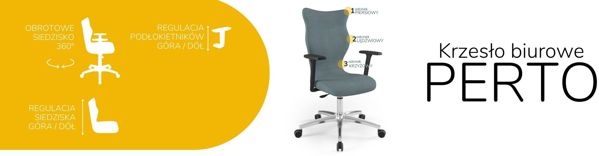 Moderní židle Perto Black je praktické a elegantní řešení přizpůsobené potřebám moderní kanceláře. Při dlouhé práci vsedě jsou velmi důležité správné podmínky. Optimální držení těla je naprosto zásadní, ale důležité jsou také otázky, jako je vzdálenost od monitoru a časté změny polohy. Kancelářská židle Perto s leštěnou podnoží, kterou nabízíme, vám umožní efektivně se postarat o všechny tři aspekty najednou. Tím se zvyšuje naše výkonnost a výrazně se snižují negativní účinky sedavého zaměstnání. Kancelářská židle na kolečkách také řeší organizační problémy spojené s uspořádáním a změnou uspořádání prostoru v kanceláři. Můžeme je snadno přemístit nebo přesunout do nižšího či vyššího patra. Nebude nás to stát příliš mnoho úsilí, protože námi navržená leštěná kancelářská židle je velmi lehká.