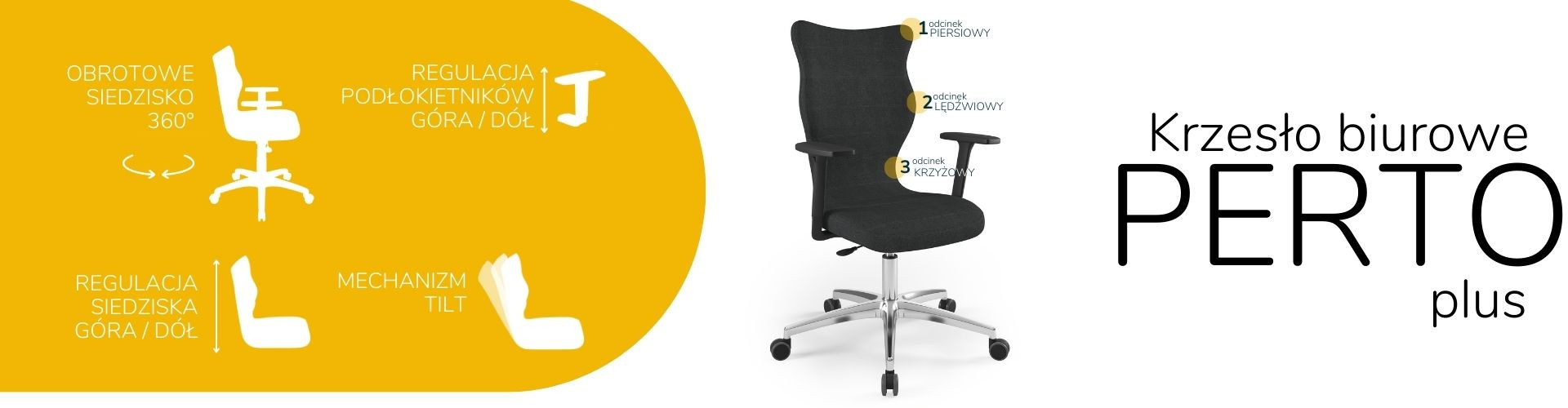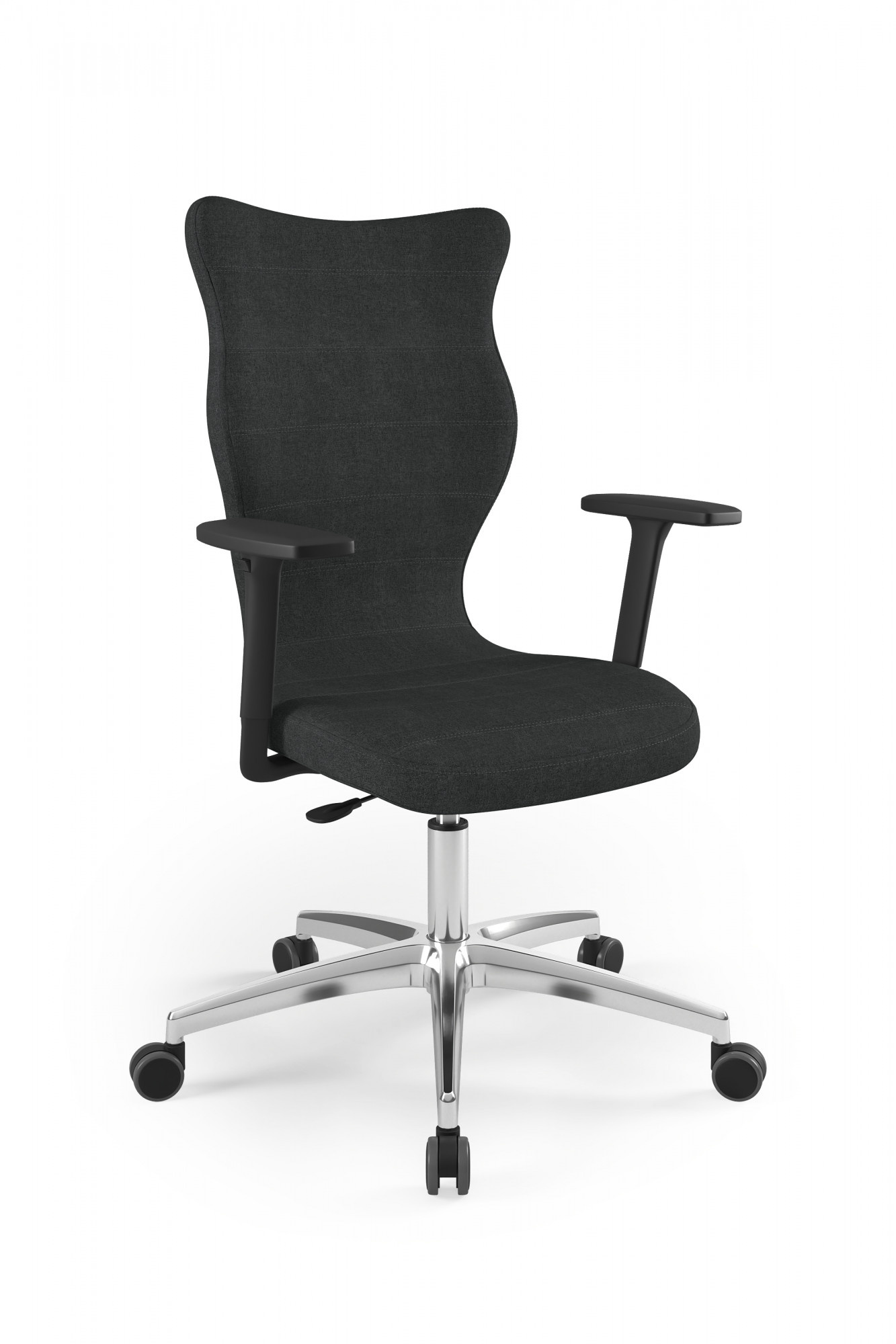 Moderní židle Perto Plus Chair Black je praktické a elegantní řešení přizpůsobené potřebám moderní kanceláře. Při dlouhé práci vsedě jsou velmi důležité správné podmínky. Optimální držení těla je naprosto zásadní, ale důležité jsou také otázky, jako je vzdálenost od monitoru a časté změny polohy. Kancelářská židle Perto Plus s leštěnou podnoží, kterou nabízíme, vám umožní efektivně se postarat o všechny tři aspekty najednou. Tím se zvyšuje naše výkonnost a výrazně se snižují negativní účinky sedavého zaměstnání. Kancelářská židle na kolečkách také řeší organizační problémy spojené s uspořádáním a změnou uspořádání prostoru v kanceláři. Můžeme je snadno přemístit nebo přesunout do nižšího či vyššího patra. Nebude nás to stát příliš mnoho úsilí, protože námi navržená leštěná kancelářská židle je velmi lehká.