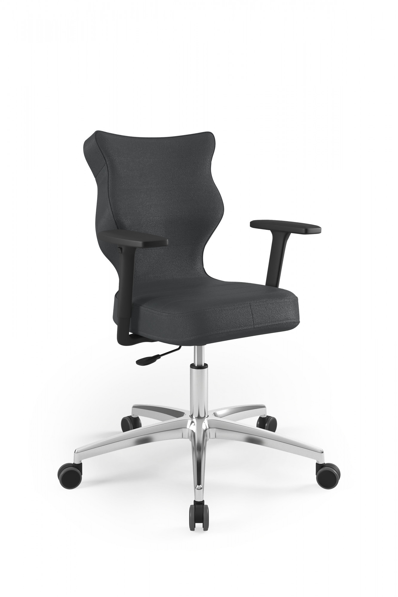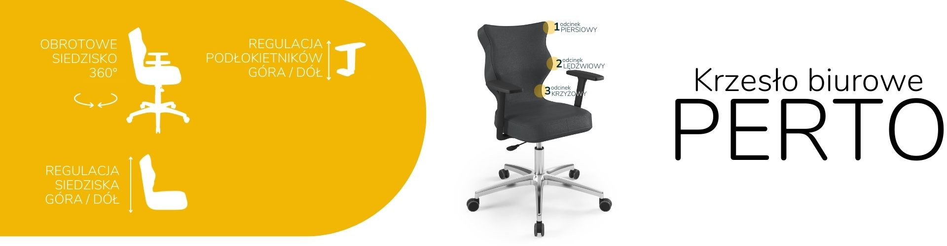 Moderní židle Perto Black je praktické a elegantní řešení přizpůsobené potřebám moderní kanceláře. Při dlouhé práci vsedě jsou velmi důležité správné podmínky. Optimální držení těla je naprosto zásadní, ale důležité jsou také otázky, jako je vzdálenost od monitoru a časté změny polohy. Kancelářská židle Perto s leštěnou podnoží, kterou nabízíme, vám umožní efektivně se postarat o všechny tři aspekty najednou. Tím se zvyšuje naše výkonnost a výrazně se snižují negativní účinky sedavého zaměstnání. Kancelářská židle na kolečkách také řeší organizační problémy spojené s uspořádáním a změnou uspořádání prostoru v kanceláři. Můžeme je snadno přemístit nebo přesunout do nižšího či vyššího patra. Nebude nás to stát příliš mnoho úsilí, protože námi navržená leštěná kancelářská židle je velmi lehká.
