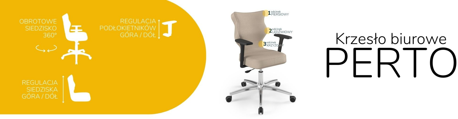 Moderní židle Perto Black je praktické a elegantní řešení přizpůsobené potřebám moderní kanceláře. Při dlouhé práci vsedě jsou velmi důležité správné podmínky. Optimální držení těla je naprosto zásadní, ale důležité jsou také otázky, jako je vzdálenost od monitoru a časté změny polohy. Kancelářská židle Perto s leštěnou podnoží, kterou nabízíme, vám umožní efektivně se postarat o všechny tři aspekty najednou. Tím se zvyšuje naše výkonnost a výrazně se snižují negativní účinky sedavého zaměstnání. Kancelářská židle na kolečkách také řeší organizační problémy spojené s uspořádáním a změnou uspořádání prostoru v kanceláři. Můžeme je snadno přemístit nebo přesunout do nižšího či vyššího patra. Nebude nás to stát příliš mnoho úsilí, protože námi navržená leštěná kancelářská židle je velmi lehká.