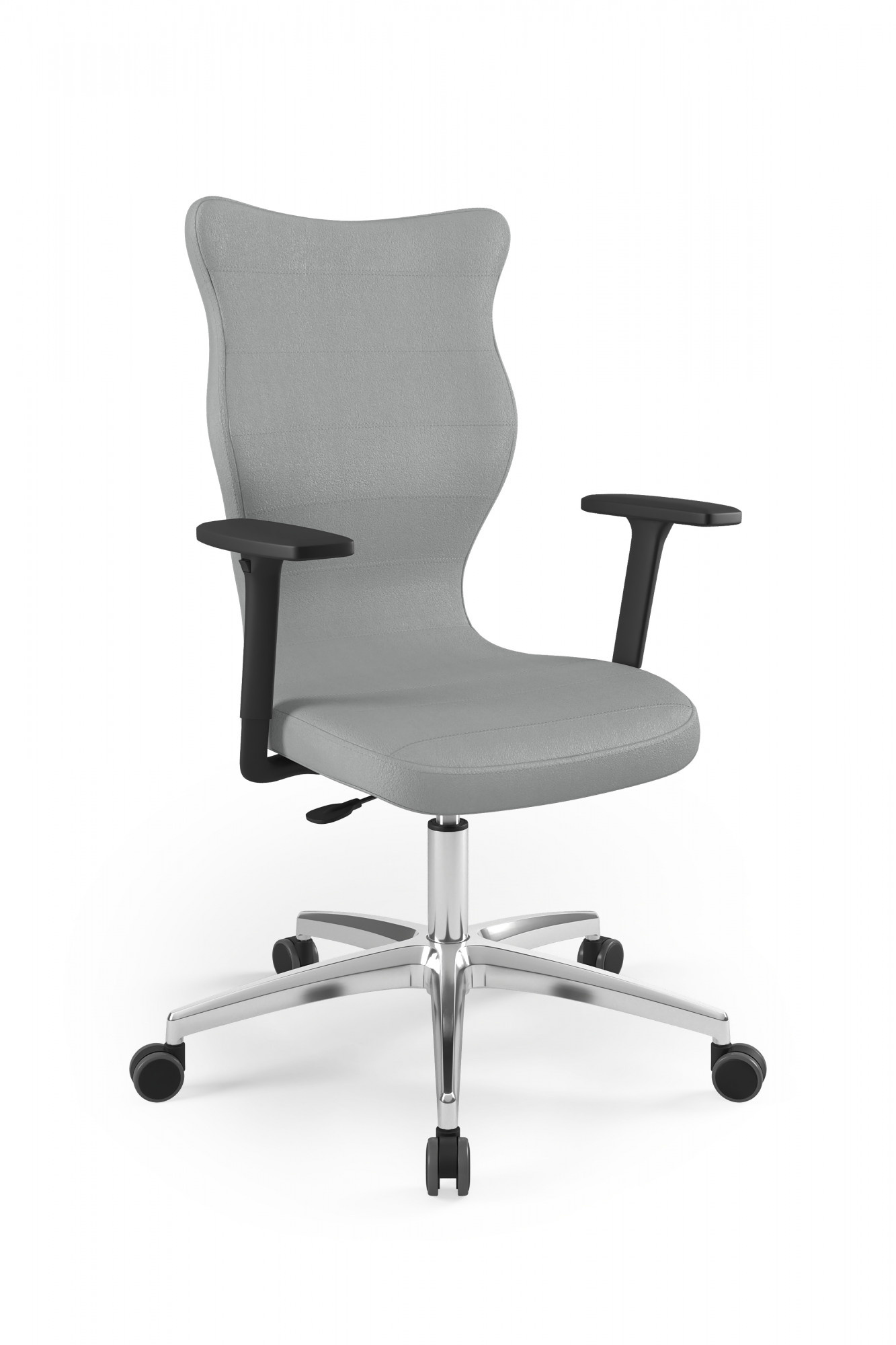 Moderní židle Perto Black je praktické a elegantní řešení přizpůsobené potřebám moderní kanceláře. Při dlouhé práci vsedě jsou velmi důležité správné podmínky. Optimální držení těla je naprosto zásadní, ale důležité jsou také otázky, jako je vzdálenost od monitoru a časté změny polohy. Kancelářská židle Perto s leštěnou podnoží, kterou nabízíme, vám umožní efektivně se postarat o všechny tři aspekty najednou. Tím se zvyšuje naše výkonnost a výrazně se snižují negativní účinky sedavého zaměstnání. Kancelářská židle na kolečkách také řeší organizační problémy spojené s uspořádáním a změnou uspořádání prostoru v kanceláři. Můžeme je snadno přemístit nebo přesunout do nižšího či vyššího patra. Nebude nás to stát příliš mnoho úsilí, protože námi navržená leštěná kancelářská židle je velmi lehká.
