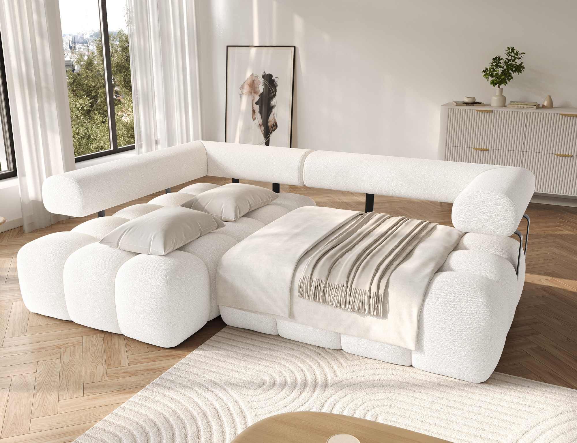 Jednou z hlavních předností této sedací soupravy je její rozkládací funkce. Snadno ji přeměníte na pohodlné lůžko s plochou na spaní 110 x 187 cm, což je ideální pro nečekané hosty nebo pro ty, kteří si rádi dopřejí odpolední siestu. Díky této funkci se stává skvělou volbou pro menší byty, kde je třeba efektivně využít každý centimetr prostoru.
