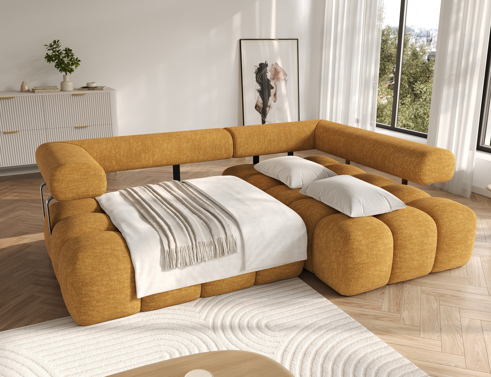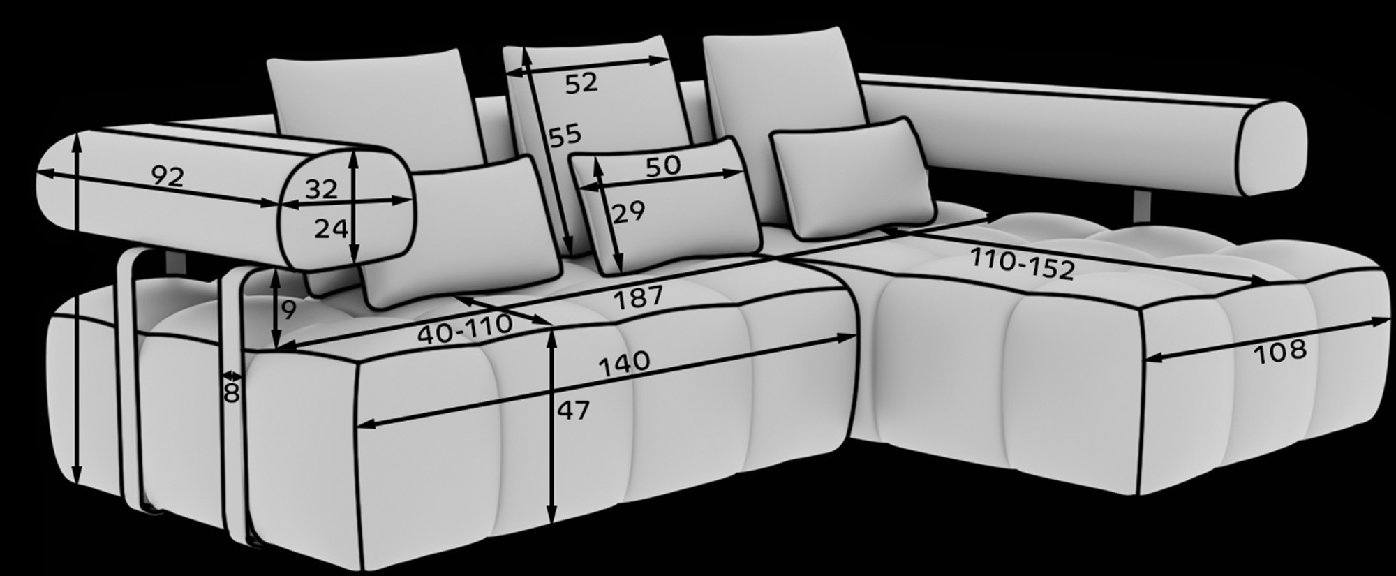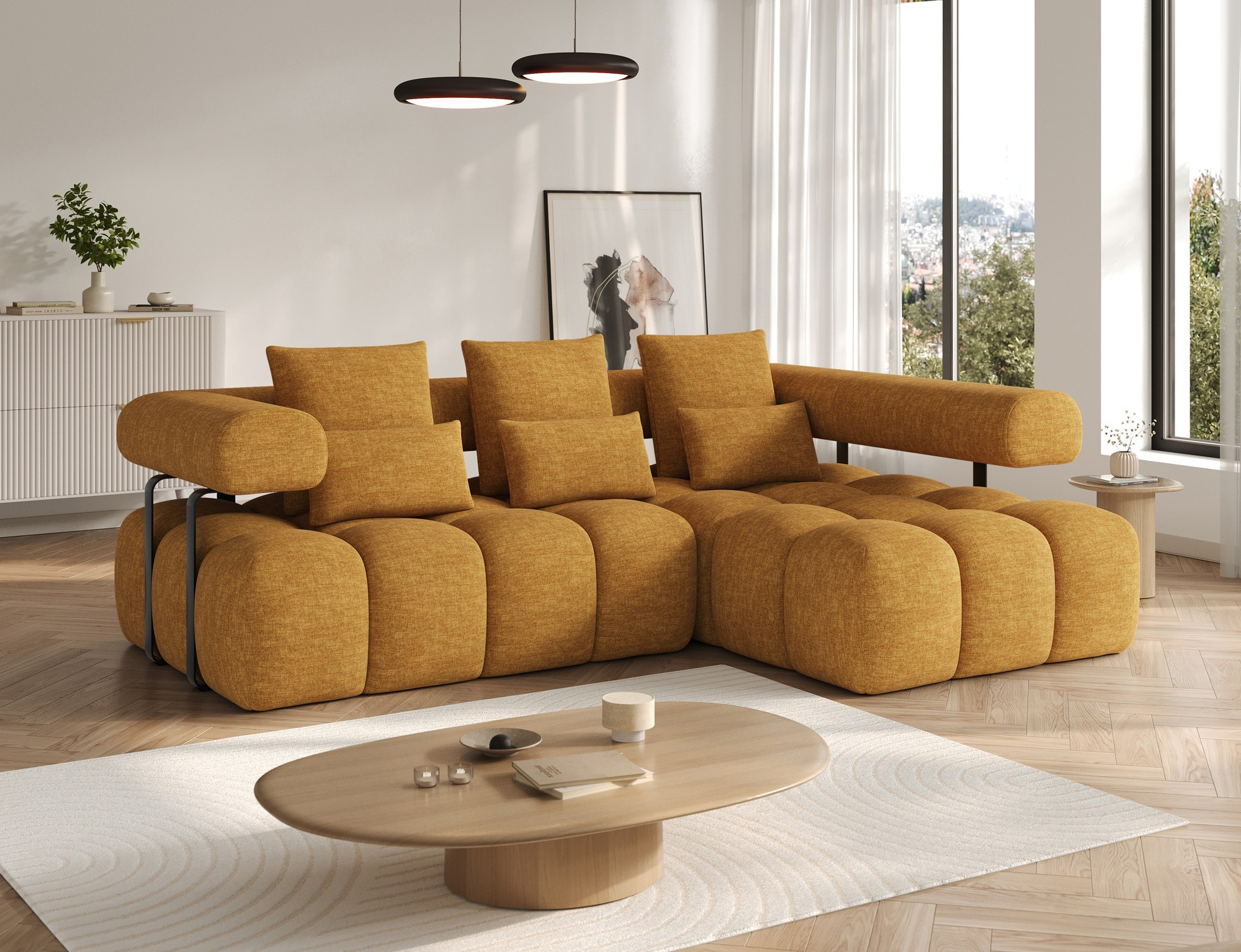Rohová pohovka Levvi, o rozměrech 260x184x102 cm, je moderní a funkční kus nábytku navržený pro každodenní pohodlí a estetiku interiéru. Vybaven systémem vlnových pružin typu B a vysoce odolnou pěnou HR3030, poskytuje optimální podporu těla a dlouhotrvající odolnost. Pohovka je vybavena praktickou funkcí spaní, která umožňuje rychlou přeměnu na pohodlnou postel pro přenocování hostů. Díky plně čalouněnému opěradlu může být kus volně umístěn kdekoli v obývacím pokoji, aniž by musel být umístěn ke zdi, což nabízí větší flexibilitu v interiérovém designu. Černé plastové nohy doplňují celkový vzhled a zdůrazňují jeho moderní a minimalistický charakter. Levvi je ideálním řešením pro ty, kteří hledají elegantní rohovou pohovku s funkcí spaní, která kombinuje moderní styl, pohodlí a každodenní praktičnost.