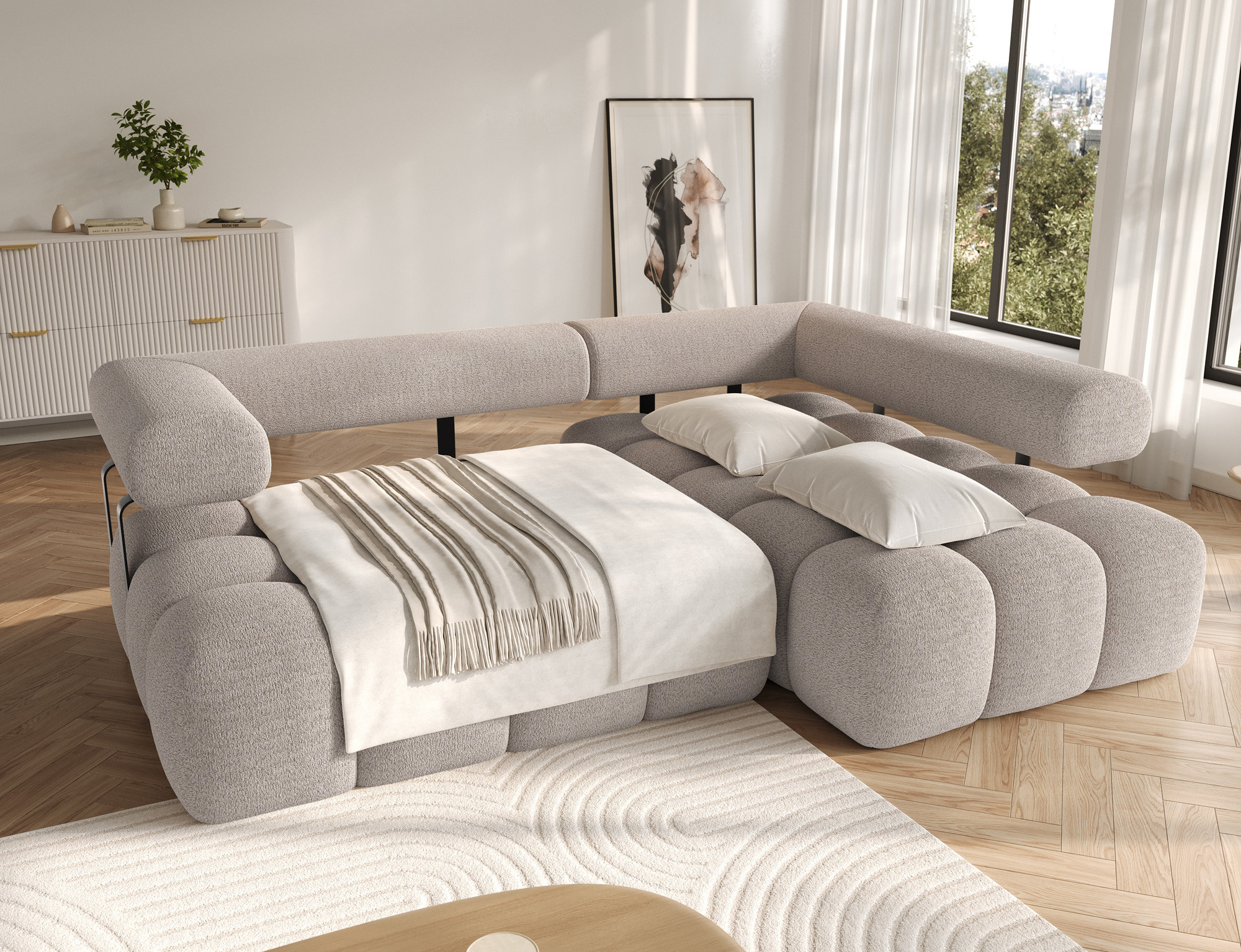 Jednou z hlavních předností této sedací soupravy je její rozkládací funkce. Snadno ji přeměníte na pohodlné lůžko s plochou na spaní 110 x 187 cm, což je ideální pro nečekané hosty nebo pro ty, kteří si rádi dopřejí odpolední siestu. Díky této funkci se stává skvělou volbou pro menší byty, kde je třeba efektivně využít každý centimetr prostoru.