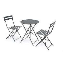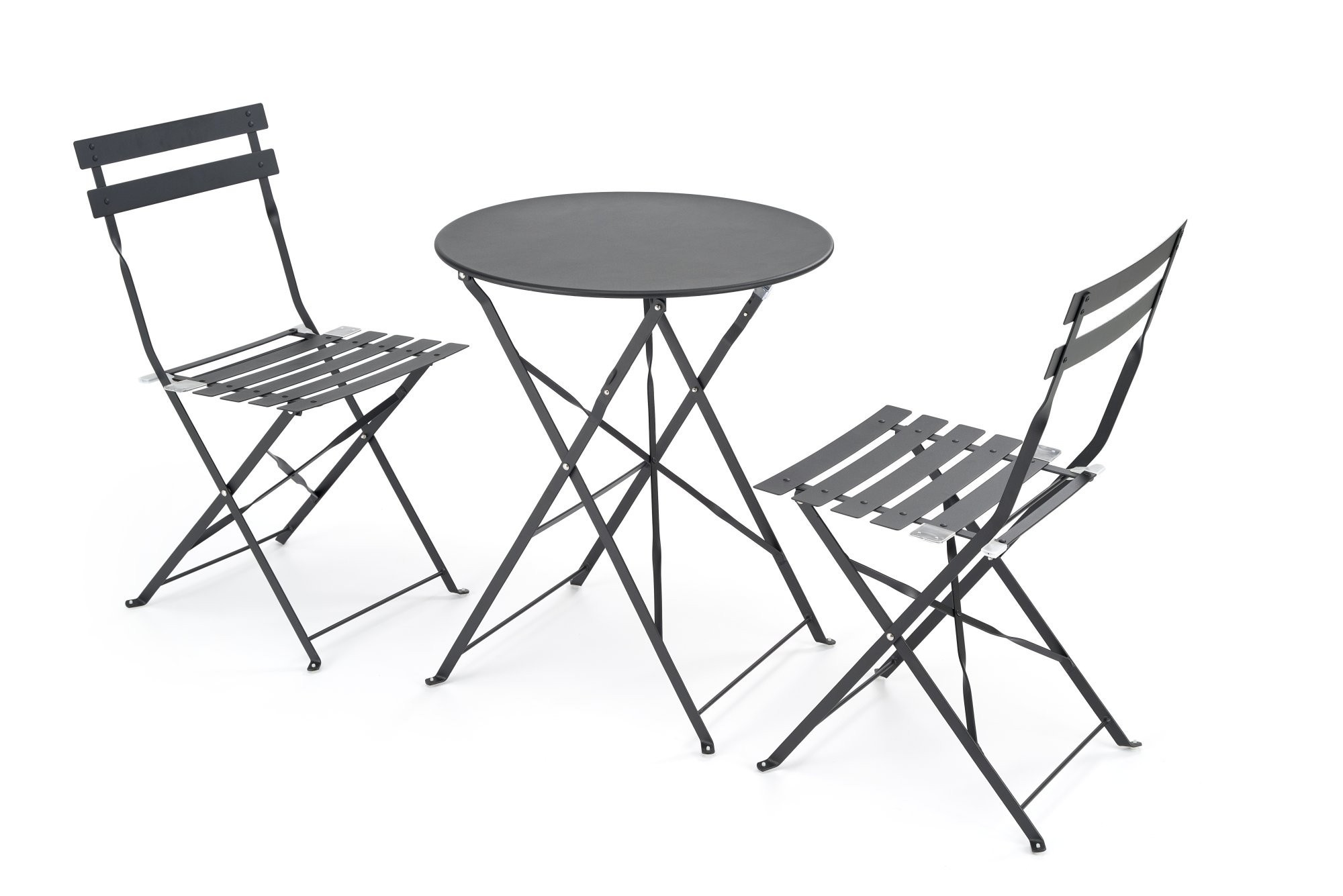 rozměry: fi60/72 cm a 41/44/81/45 cm, sada: stůl + 2 skládací židle, materiál: ocel s práškovým nástřikem, barva: černá