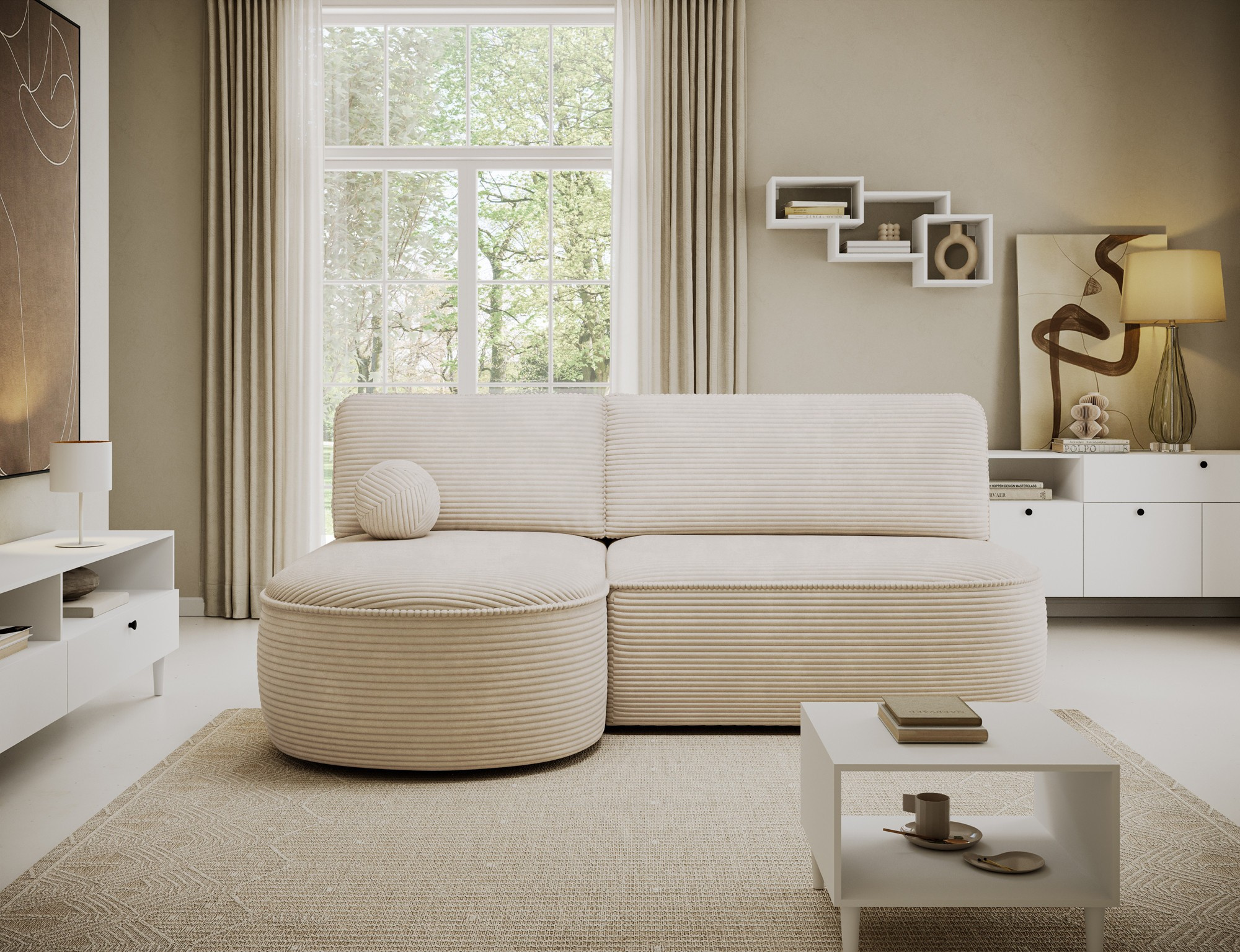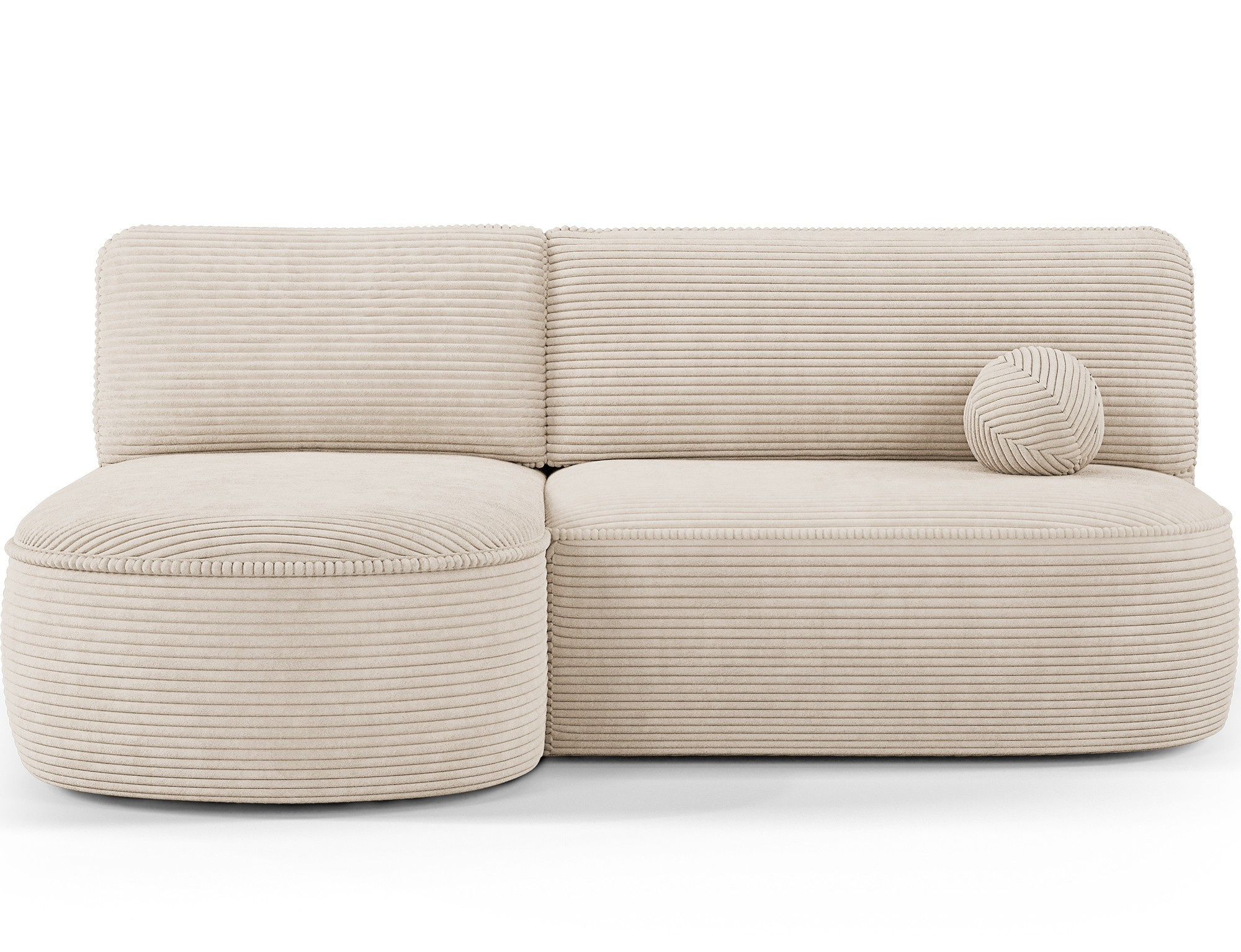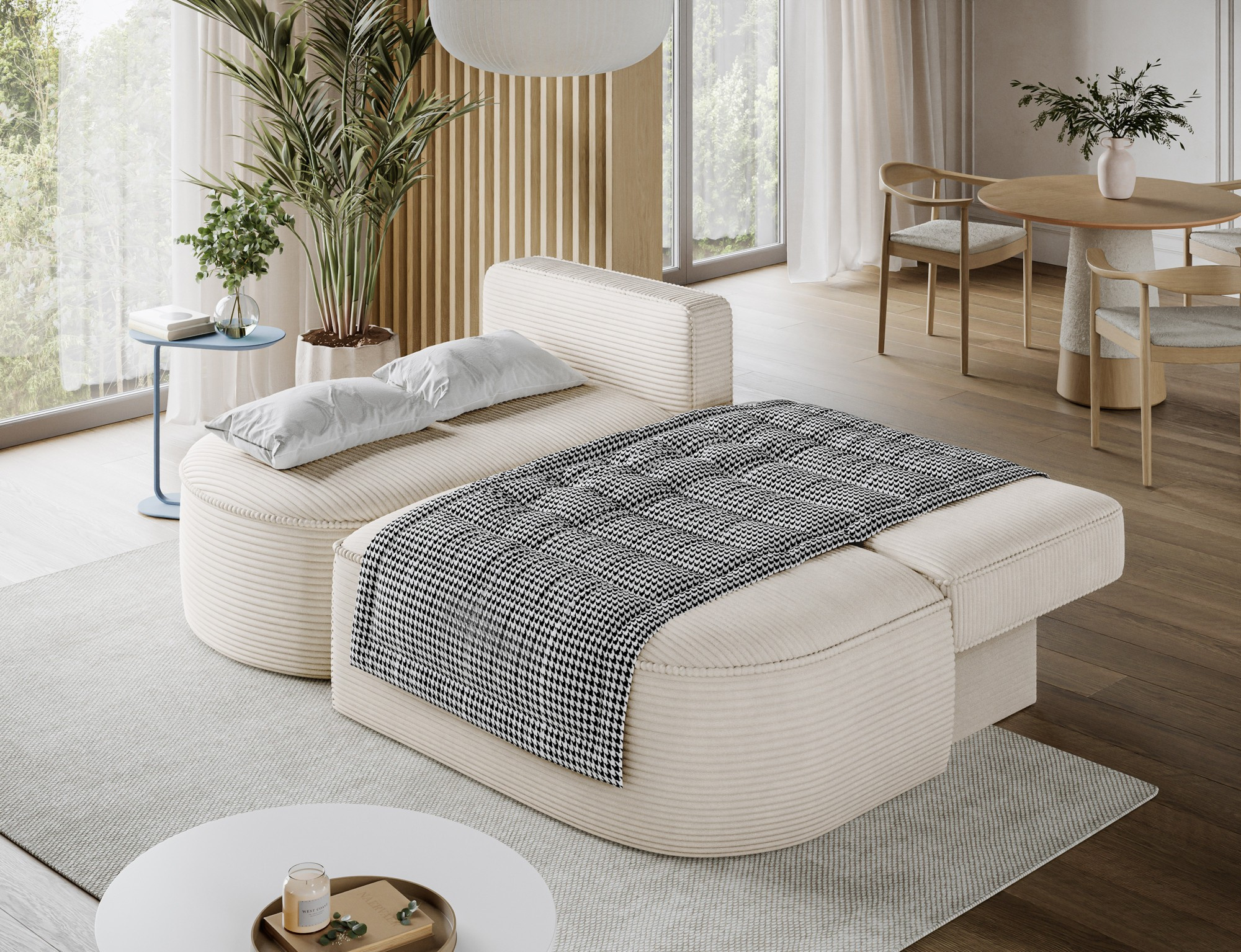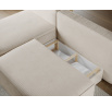 Livosa corner sofa is a modern L-shaped sofa with sleeping function that combines everyday comfort with practical living room solutions. The ergonomic seat and backrest, filled with B-type wave springs and T2540 polyurethane foam, provide excellent support, durability, and comfort. The sofa features a DL unfolding mechanism, allowing quick and easy conversion into a sleeping surface measuring 125 × 220 × 48 cm, making it ideal as a sofa bed. An additional advantage is the bedding storage compartment measuring 50 × 104 × 24 cm. The design is completed with decorative cushions filled with foam granules, low black legs with a height of 3 cm, and a solid construction with overall dimensions of 220 × 144 × 93 cm, making Livosa a perfect fit for modern interiors.
