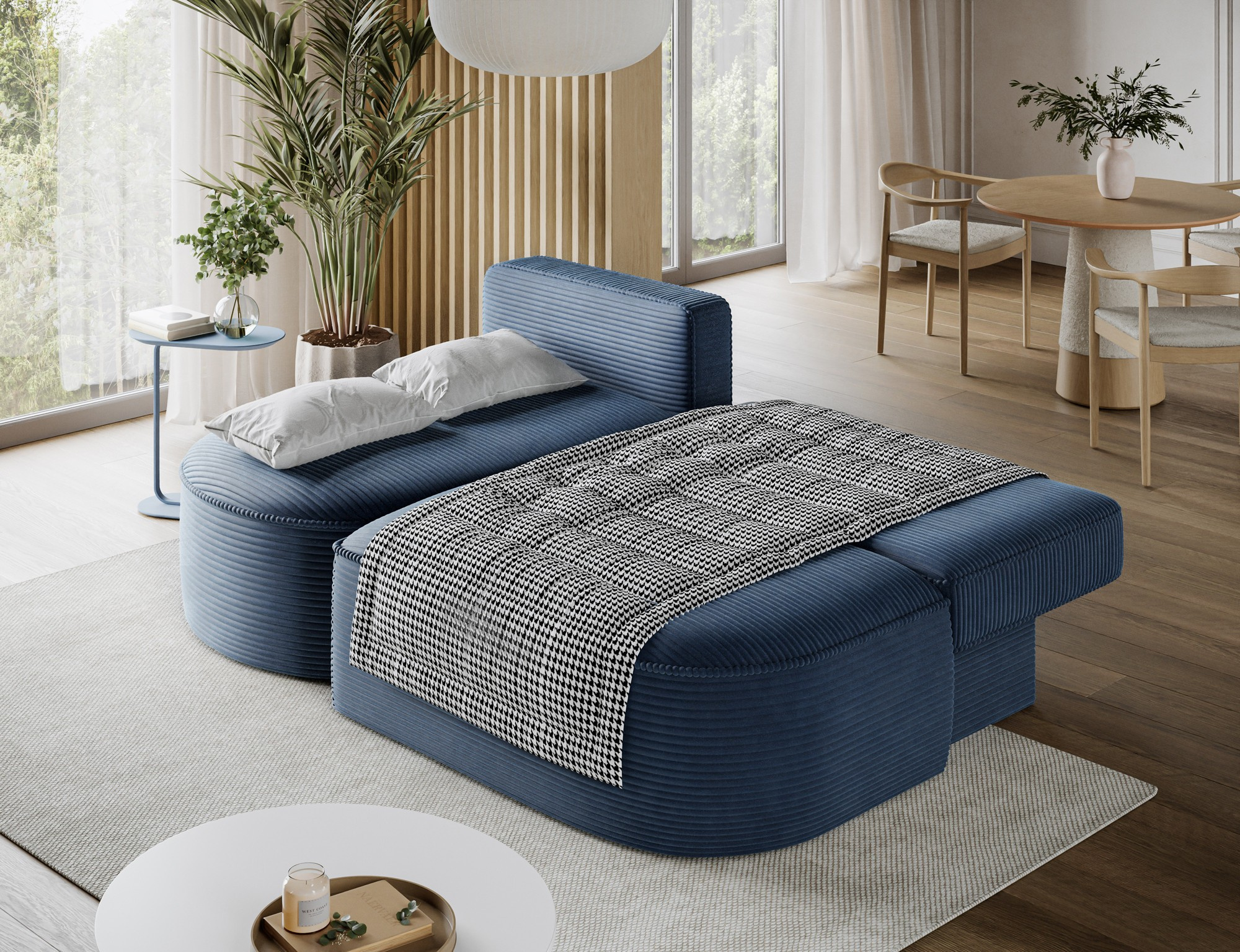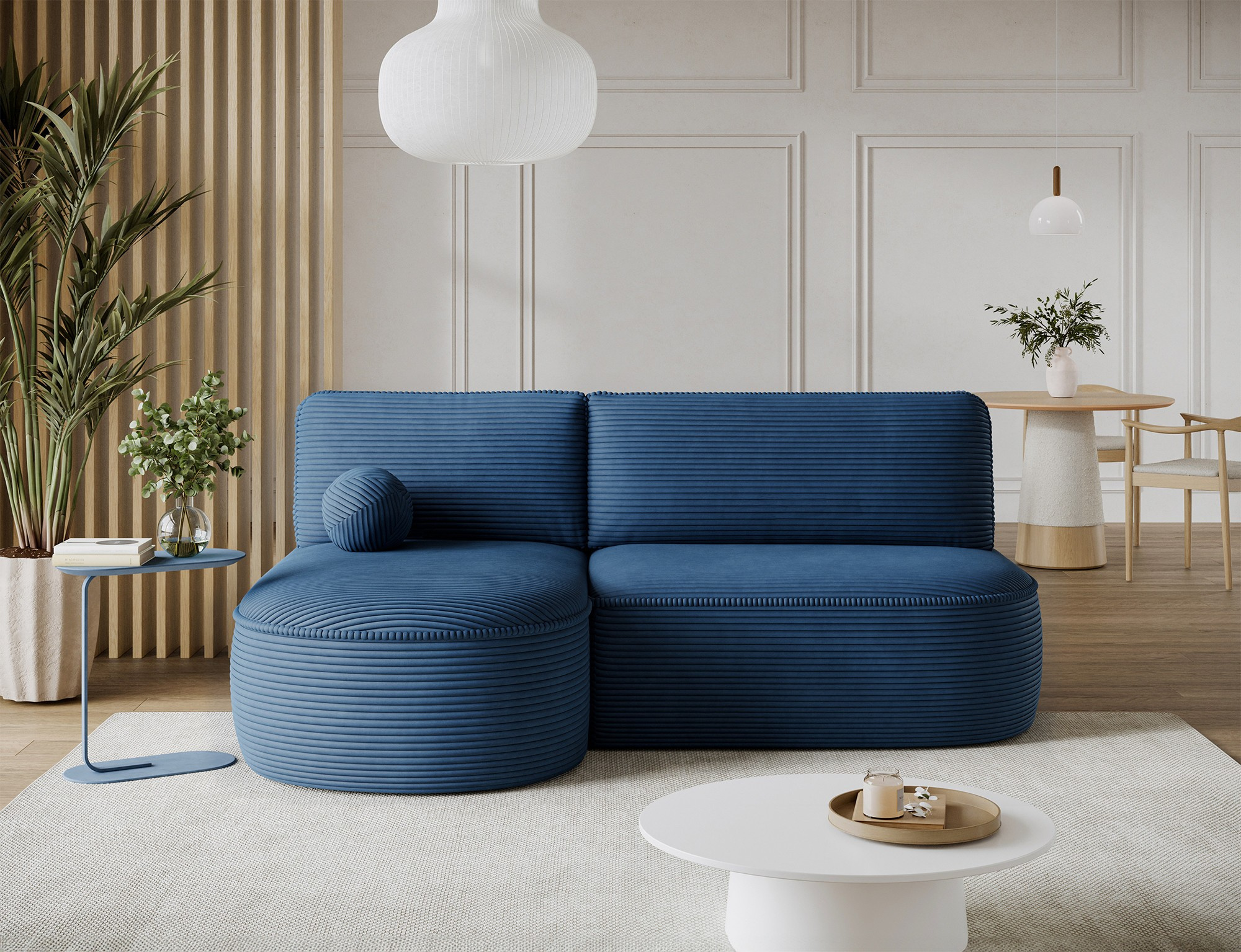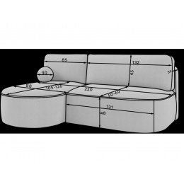 Livosa corner sofa is a modern L-shaped sofa with sleeping function that combines everyday comfort with practical living room solutions. The ergonomic seat and backrest, filled with B-type wave springs and T2540 polyurethane foam, provide excellent support, durability, and comfort. The sofa features a DL unfolding mechanism, allowing quick and easy conversion into a sleeping surface measuring 125 × 220 × 48 cm, making it ideal as a sofa bed. An additional advantage is the bedding storage compartment measuring 50 × 104 × 24 cm. The design is completed with decorative cushions filled with foam granules, low black legs with a height of 3 cm, and a solid construction with overall dimensions of 220 × 144 × 93 cm, making Livosa a perfect fit for modern interiors.