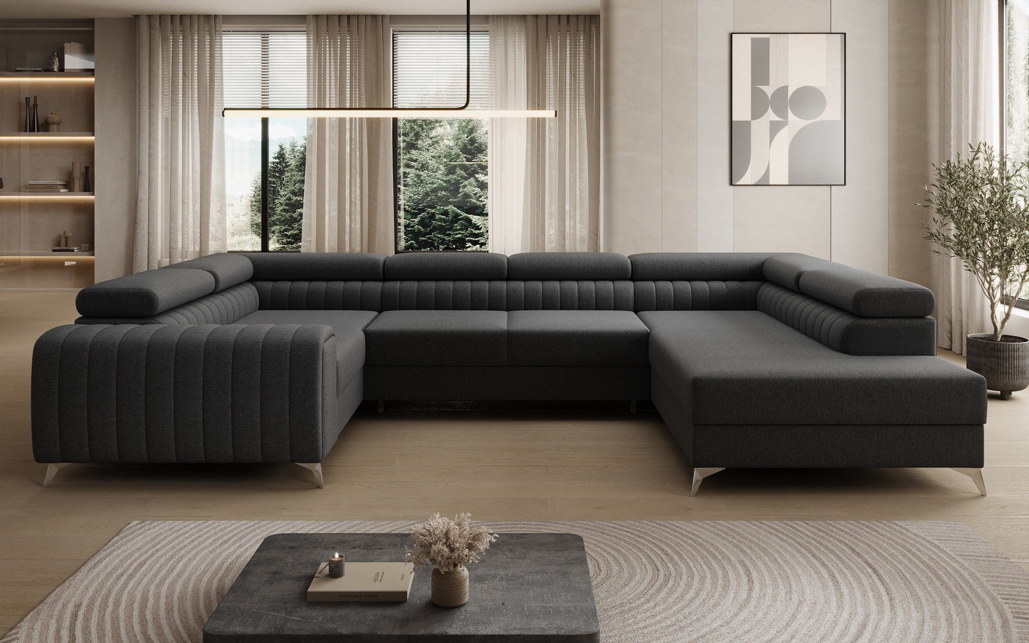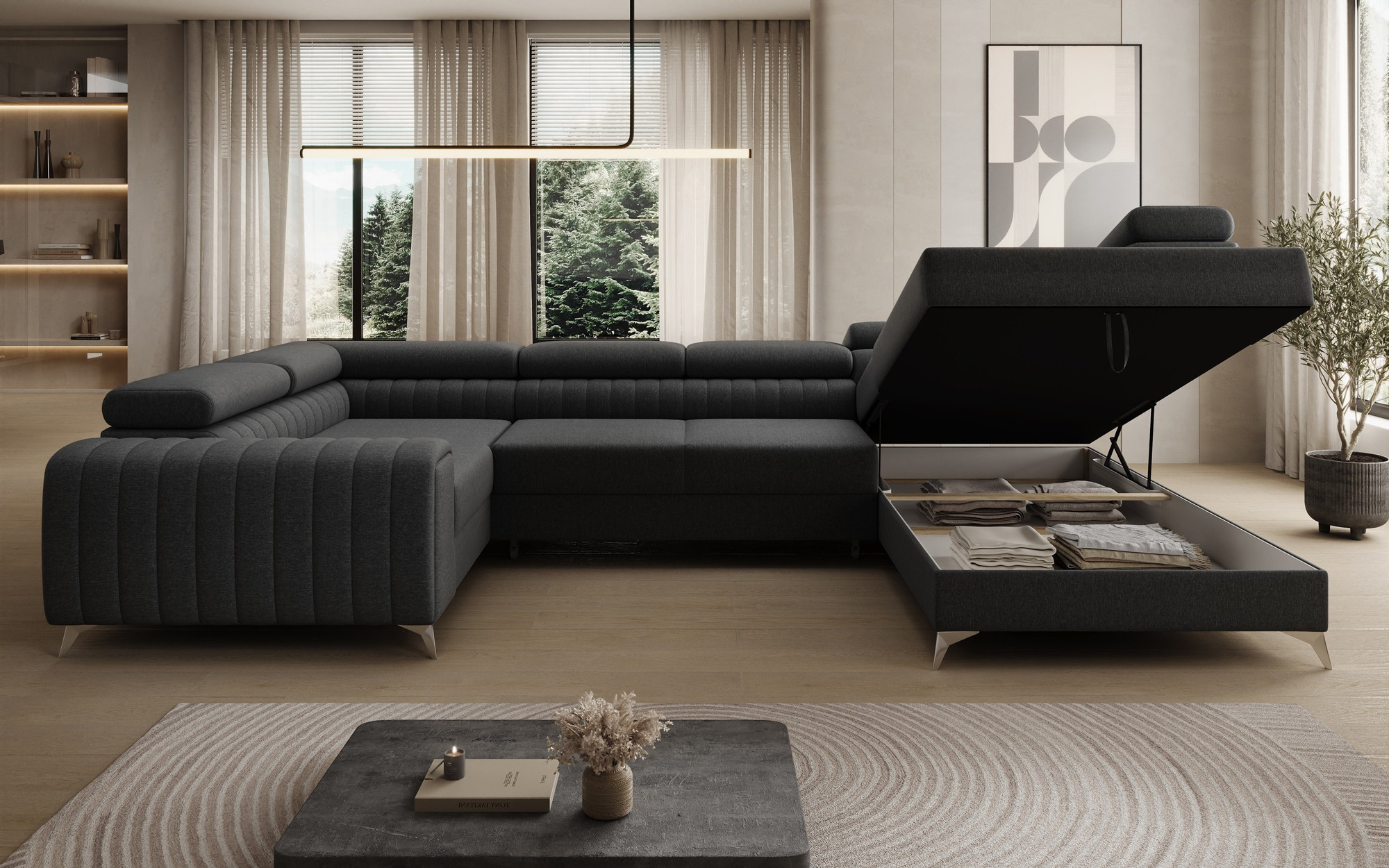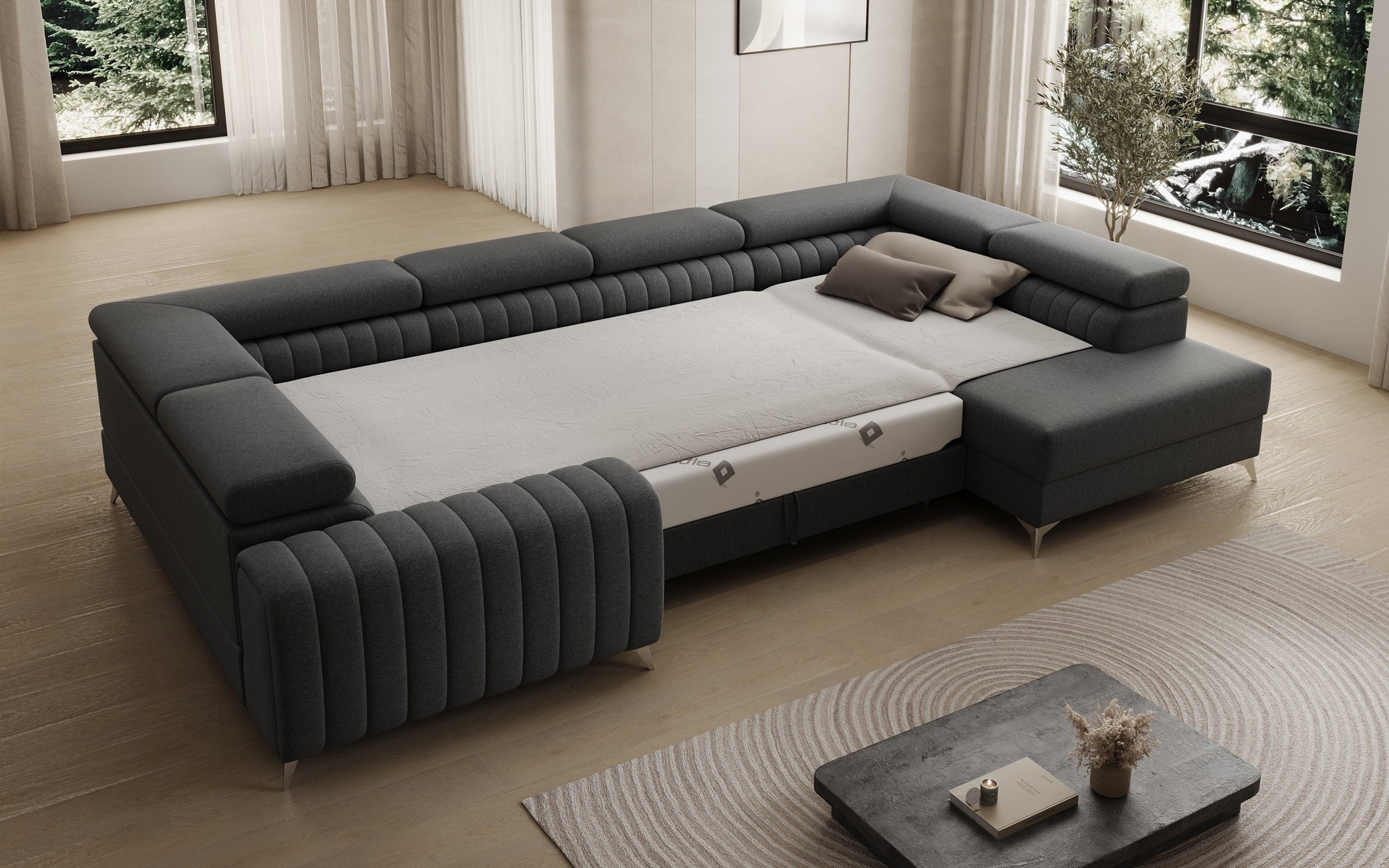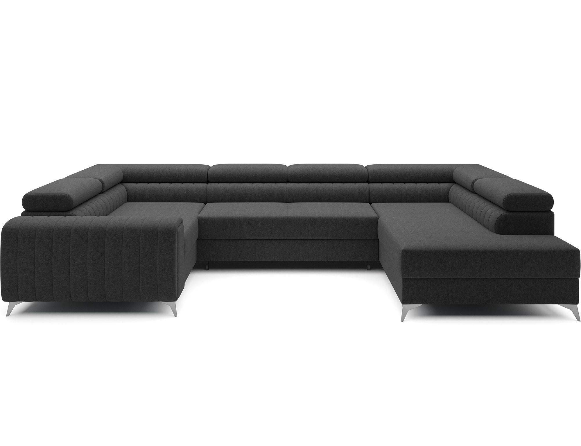 Rohová pohovka Louis je pohodlná, stylová a především funkční. Sedák se skládá z vlnových pružin a výplně z T30 a vysoce pružné HR pěny, která se dokonale přizpůsobí tělu a zvyšuje komfort. Rozměry rohové pohovky Louis — 347 x 202 x 92 cm — dále zvyšují úroveň pohodlí. Mezi jeho výhody patří čtyři nastavitelné opěrky hlavy, úložný prostor na lůžkoviny a velká spací plocha o rozměrech 254 x 123 cm. Kromě toho je mechanismus rozkládání „delfín“ použitý v tomto kusu jednoduchý a intuitivní. Můžete si také vybrat barvu čalounění rohové pohovky Louis z palety látkové kolekce Eltap. Designové nohy pohovky také stojí za zmínku — jsou vyrobeny z oceli, pochromované a vysoké, což dodává nábytku elegantní nádech. Estetické kvality jsou dále zdůrazněny vertikálním prošíváním na boku a zadní části pohovky Louis.