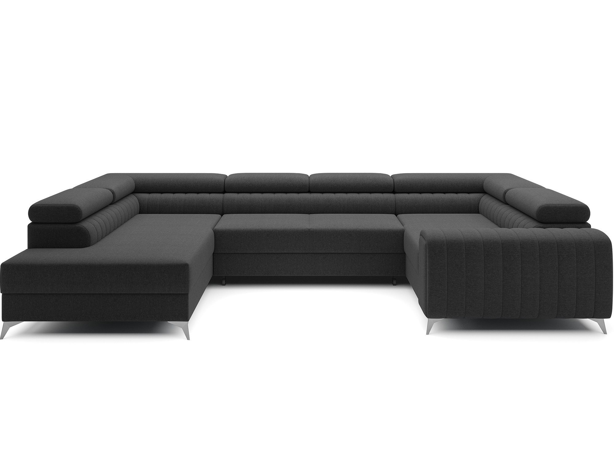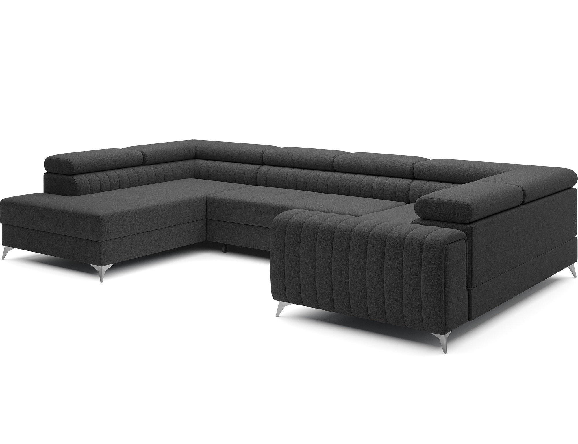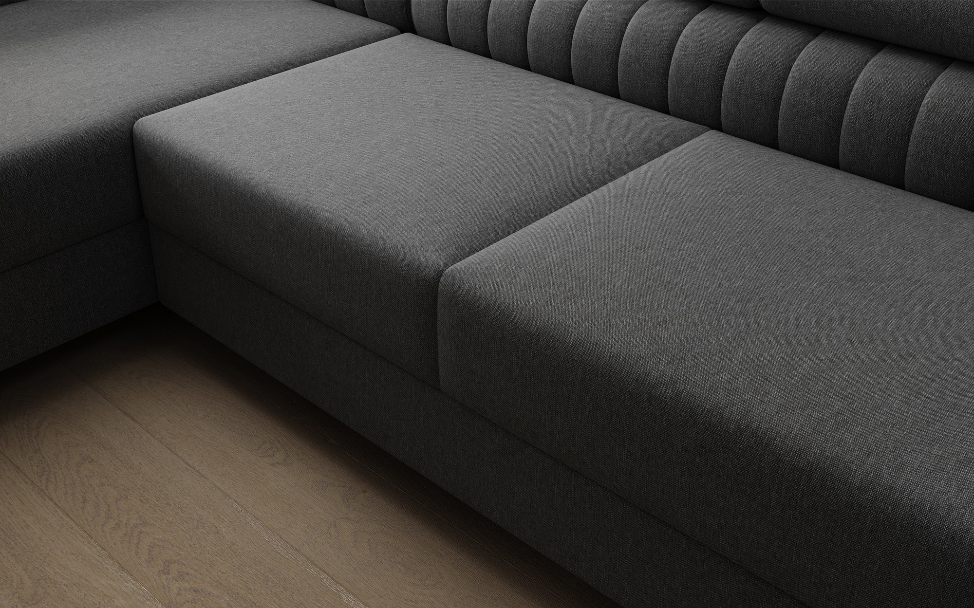 Rohová pohovka Louis je pohodlná, stylová a především funkční. Sedák se skládá z vlnových pružin a výplně z T30 a vysoce pružné HR pěny, která se dokonale přizpůsobí tělu a zvyšuje komfort. Rozměry rohové pohovky Louis — 347 x 202 x 92 cm — dále zvyšují úroveň pohodlí. Mezi jeho výhody patří čtyři nastavitelné opěrky hlavy, úložný prostor na lůžkoviny a velká spací plocha o rozměrech 254 x 123 cm. Kromě toho je mechanismus rozkládání „delfín“ použitý v tomto kusu jednoduchý a intuitivní. Můžete si také vybrat barvu čalounění rohové pohovky Louis z palety látkové kolekce Eltap. Designové nohy pohovky také stojí za zmínku — jsou vyrobeny z oceli, pochromované a vysoké, což dodává nábytku elegantní nádech. Estetické kvality jsou dále zdůrazněny vertikálním prošíváním na boku a zadní části pohovky Louis.