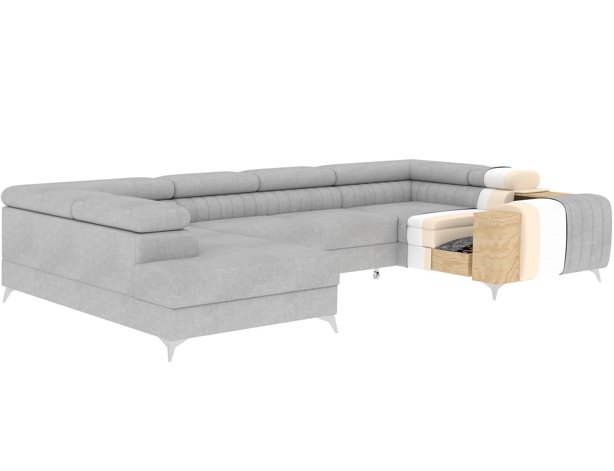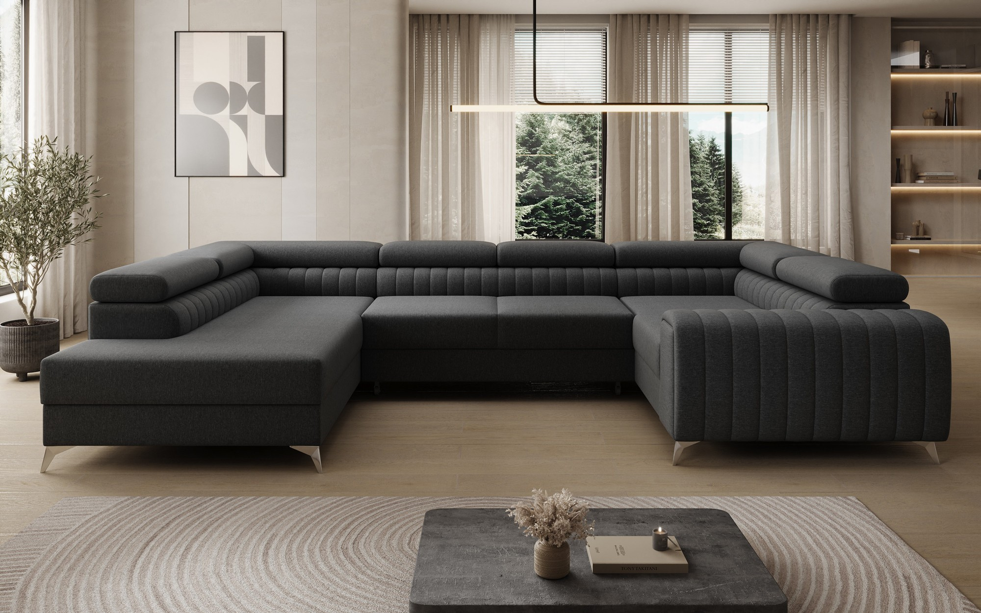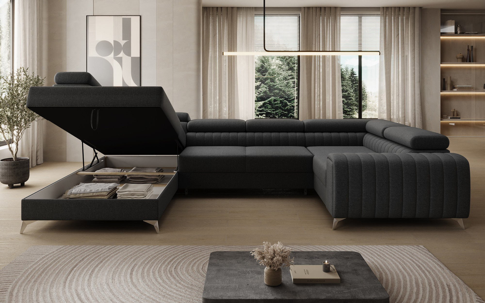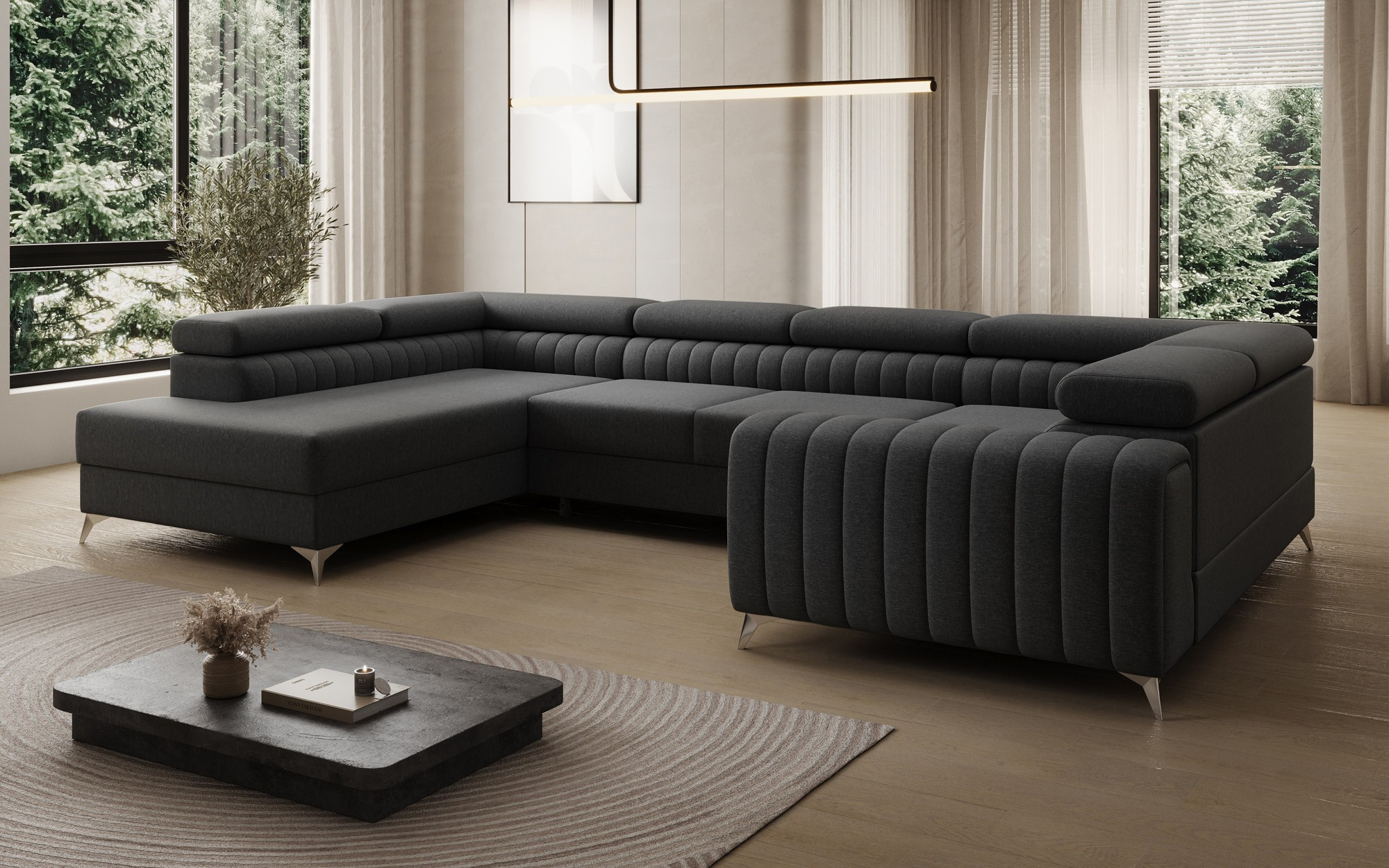 Rohová pohovka Louis je pohodlná, stylová a především funkční. Sedák se skládá z vlnových pružin a výplně z T30 a vysoce pružné HR pěny, která se dokonale přizpůsobí tělu a zvyšuje komfort. Rozměry rohové pohovky Louis — 347 x 202 x 92 cm — dále zvyšují úroveň pohodlí. Mezi jeho výhody patří čtyři nastavitelné opěrky hlavy, úložný prostor na lůžkoviny a velká spací plocha o rozměrech 254 x 123 cm. Kromě toho je mechanismus rozkládání „delfín“ použitý v tomto kusu jednoduchý a intuitivní. Můžete si také vybrat barvu čalounění rohové pohovky Louis z palety látkové kolekce Eltap. Designové nohy pohovky také stojí za zmínku — jsou vyrobeny z oceli, pochromované a vysoké, což dodává nábytku elegantní nádech. Estetické kvality jsou dále zdůrazněny vertikálním prošíváním na boku a zadní části pohovky Louis.