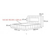 Délka: 230 cm Výška čela: 90 cm Výška sedáku: 30 cm Plocha na spaní: 200/200 cm Postel má kovový rám, LED osvětlení a úložný prostor na ložní prádlo