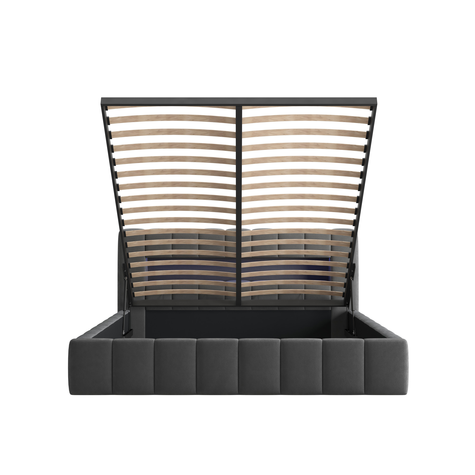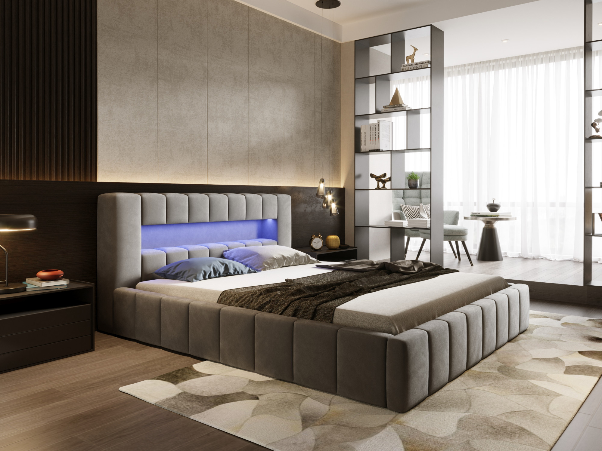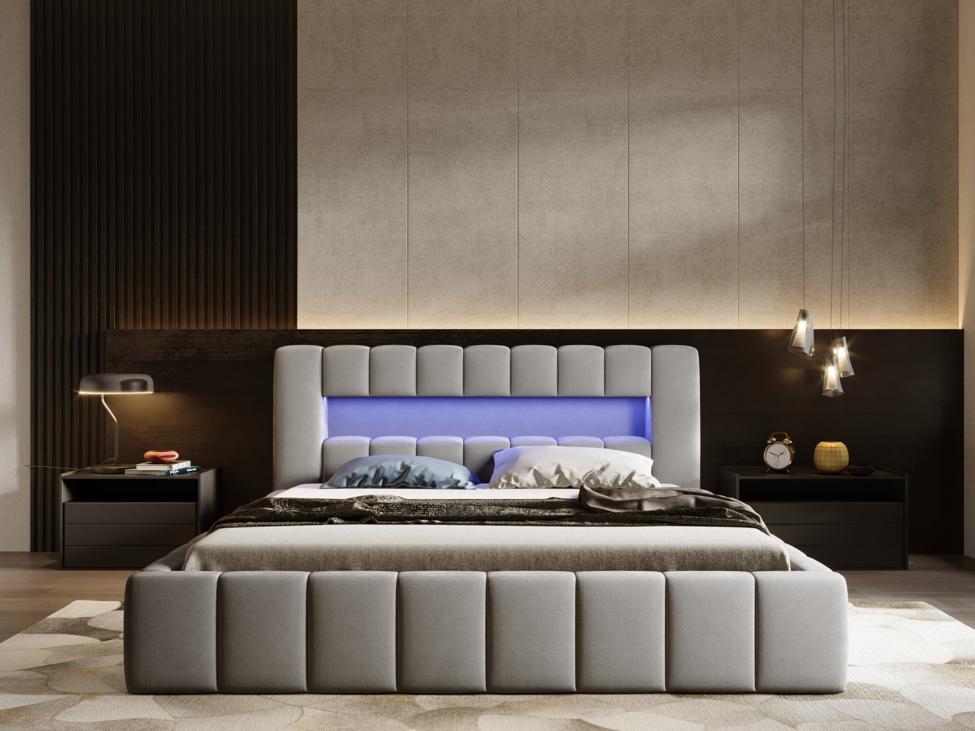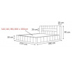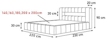 Délka: 220 cm Výška čela: 100 cm Výška sedáku: 43 cm Plocha na spaní: 180/200 cm Postel má kovový rám a úložný prostor na ložní prádlo