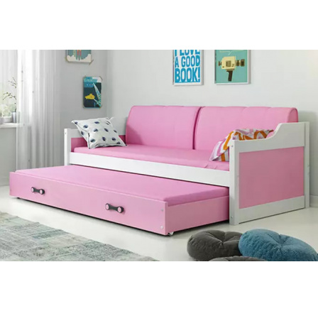 Dětská postel DAVID s matracemi, 80x190 cm, Bílá/Růžová