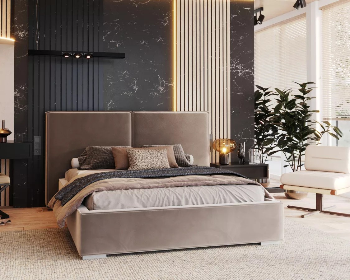 Čalouněná postel DOVER Pohodlná a přizpůsobená postel je zárukou dobře strávené noci. Ovlivní to nejen kvalitu spánku, ale také estetiku ložnice a vnímání místnosti. Hledáte-li originální řešení, stojí za to věnovat pozornost čalouněné posteli DOVER. Model zaujme zajímavým designem a funkčními řešeními. Čalouněná postel DOVER se dokonale hodí do nejnovějších trendů – skvěle se uplatní v ložnicích zařízených v moderním nebo minimalistickém stylu. Pozornost přitahuje především široké čelo postele, které dokonale přiléhá ke zdi a dodává interiéru neotřelý charakter. Jeho každodenní používání významně ovlivní vaši pohodu a způsobí, že každý den začne perfektně. Plochý čelo postele DOVER má klasický tvar a jeho minimalismus narušuje viditelné, módní prošívání.