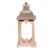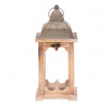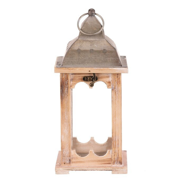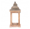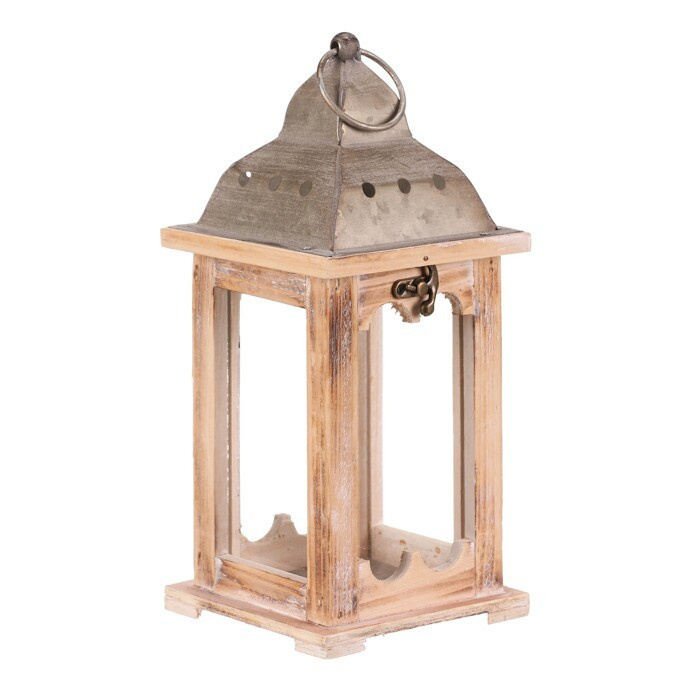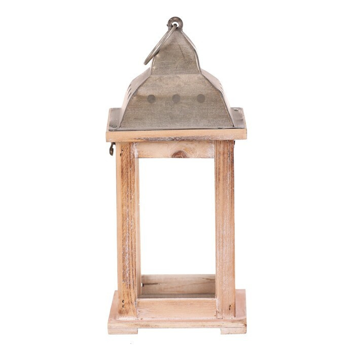 Čtyřboká lucerna s dřevěnými rámy v přírodní barvě a kovovou stříškou s kroužkem na pověšení je nádherným doplňkem pro zpříjemnění večerů. Po vložení svíčky vytvoříte neodolatelný světelný efekt, který zútulní interiér i venkovní prostory. Lucerna je ideální dekorací pro vytvoření romantického osvětlení pro slavnostní i všední chvilky.
