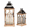 Lucerna dřevěná - kovová stříbrná stříška, cena za sadu 2 ks