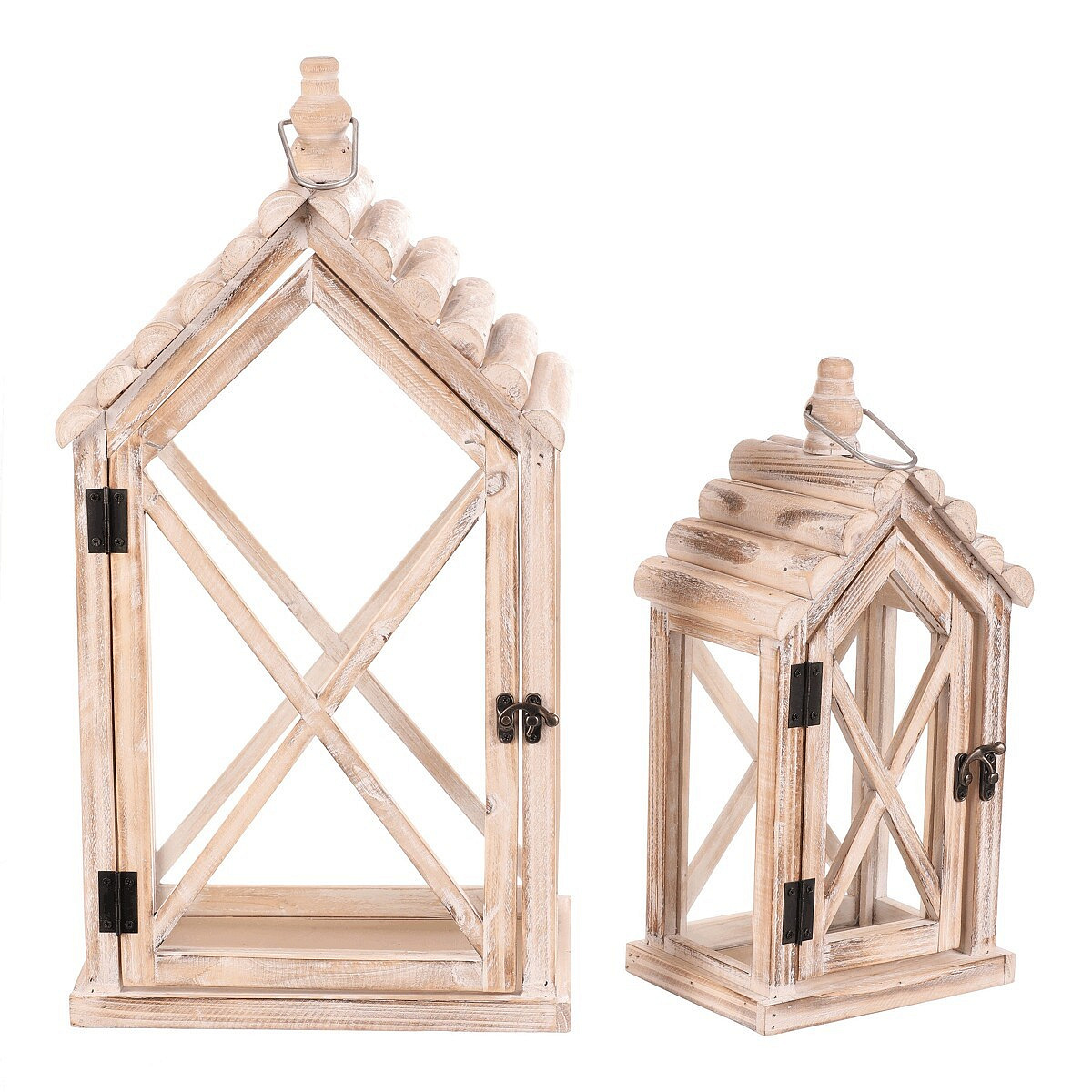 Dřevěná lucerna ve tvaru domku a v sadě 2 kusů vnese do vašeho domova pohádkovou atmosféru. Elegantní dvířka umožňují snadné vložení svíčky, která po rozsvícení vytvoří neodolatelný světelný efekt. Díky přírodní barvě dřeva a možnosti zavěšení i postavení je ideální dekorací pro dlouhé zimní večery.