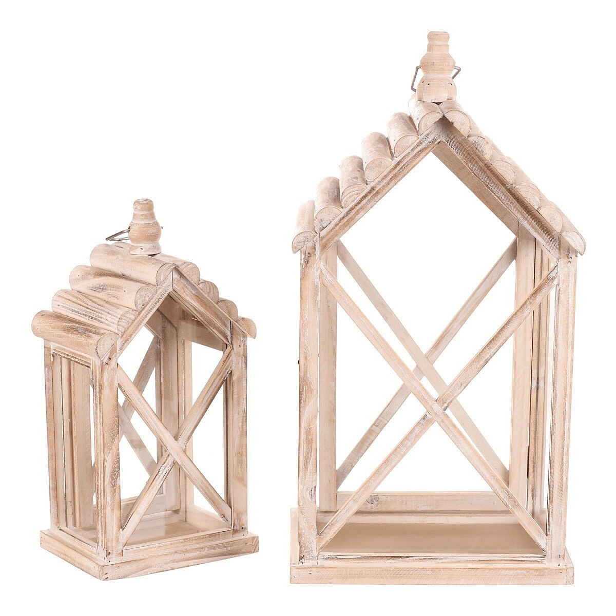Lucerna dřevěná - tvar domku, cena za sadu 2 ks