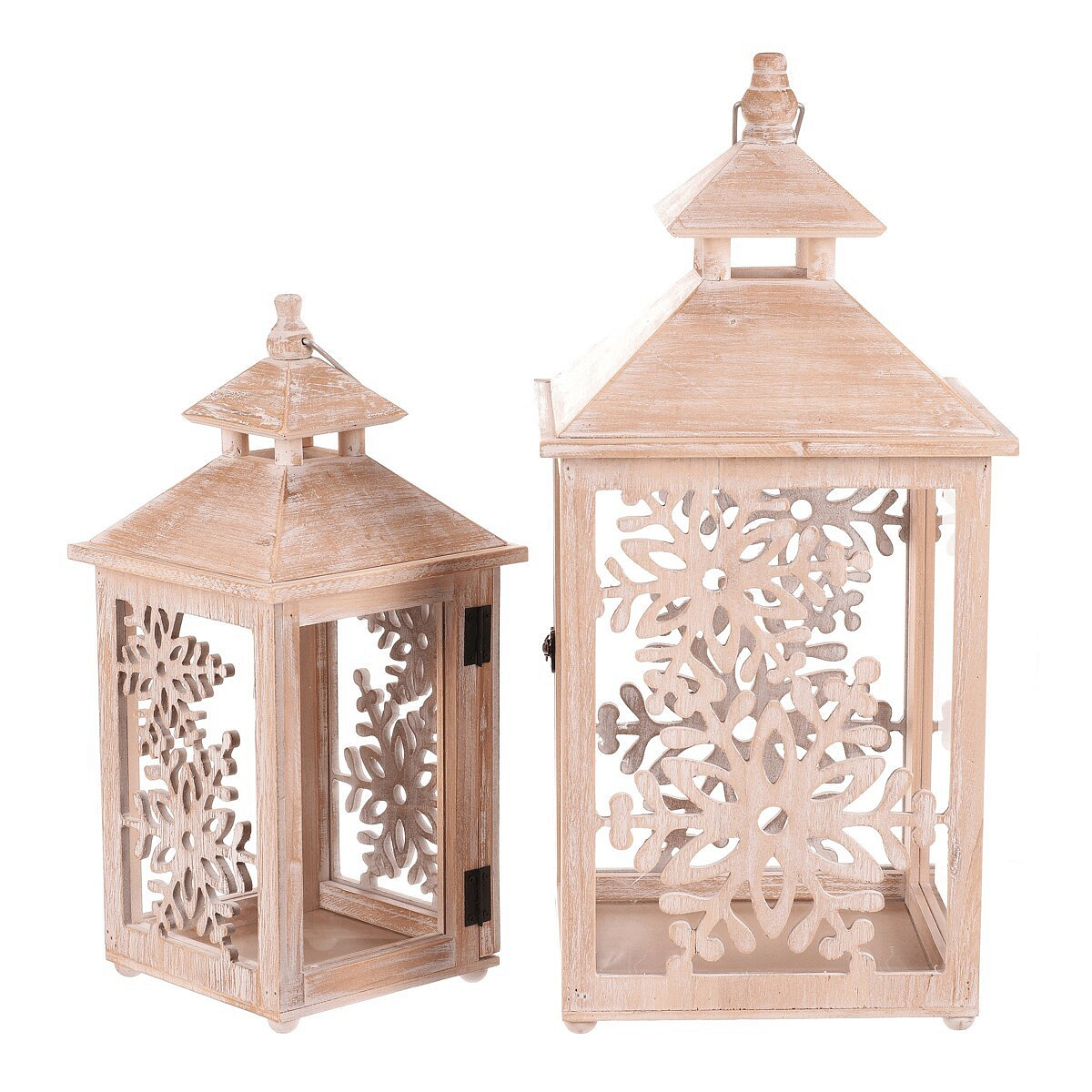 Lucerna dřevěná - vzor sněh. vloček, cena za sadu 2 ks