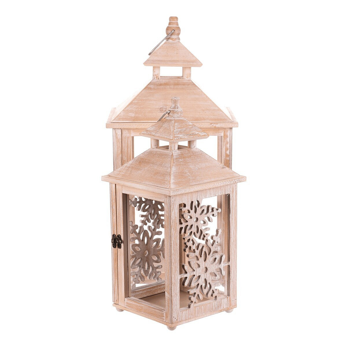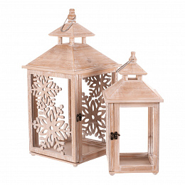 Dřevěná lucerna s vyřezaným vzorem sněhových vloček vnese do vašeho domova pohádkové zimní kouzlo. Přírodní barva dřeva s krásnou texturou dodává dekoraci rustikální nádech. Sada obsahuje dvě velikosti, přičemž každá z nich je vybavena kovovým kroužkem na pověšení. Po vložení svíčky vytvoříte nádhernou hru světla, ať už ji postavíte na stůl nebo zavěsíte.