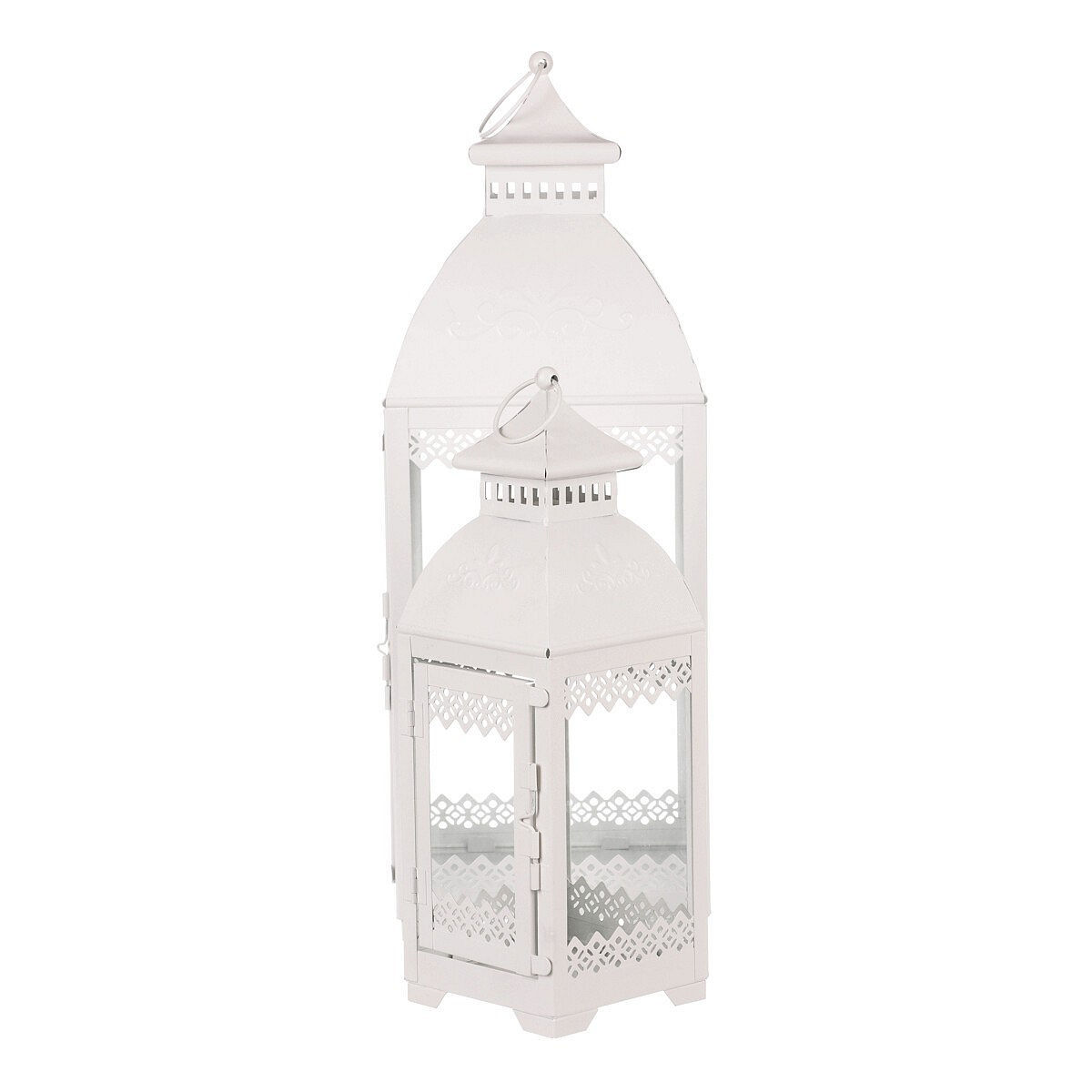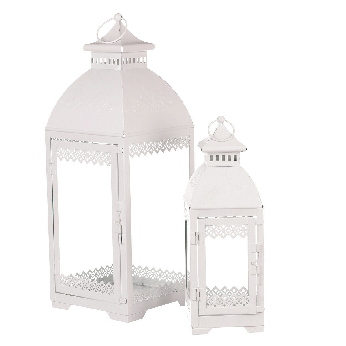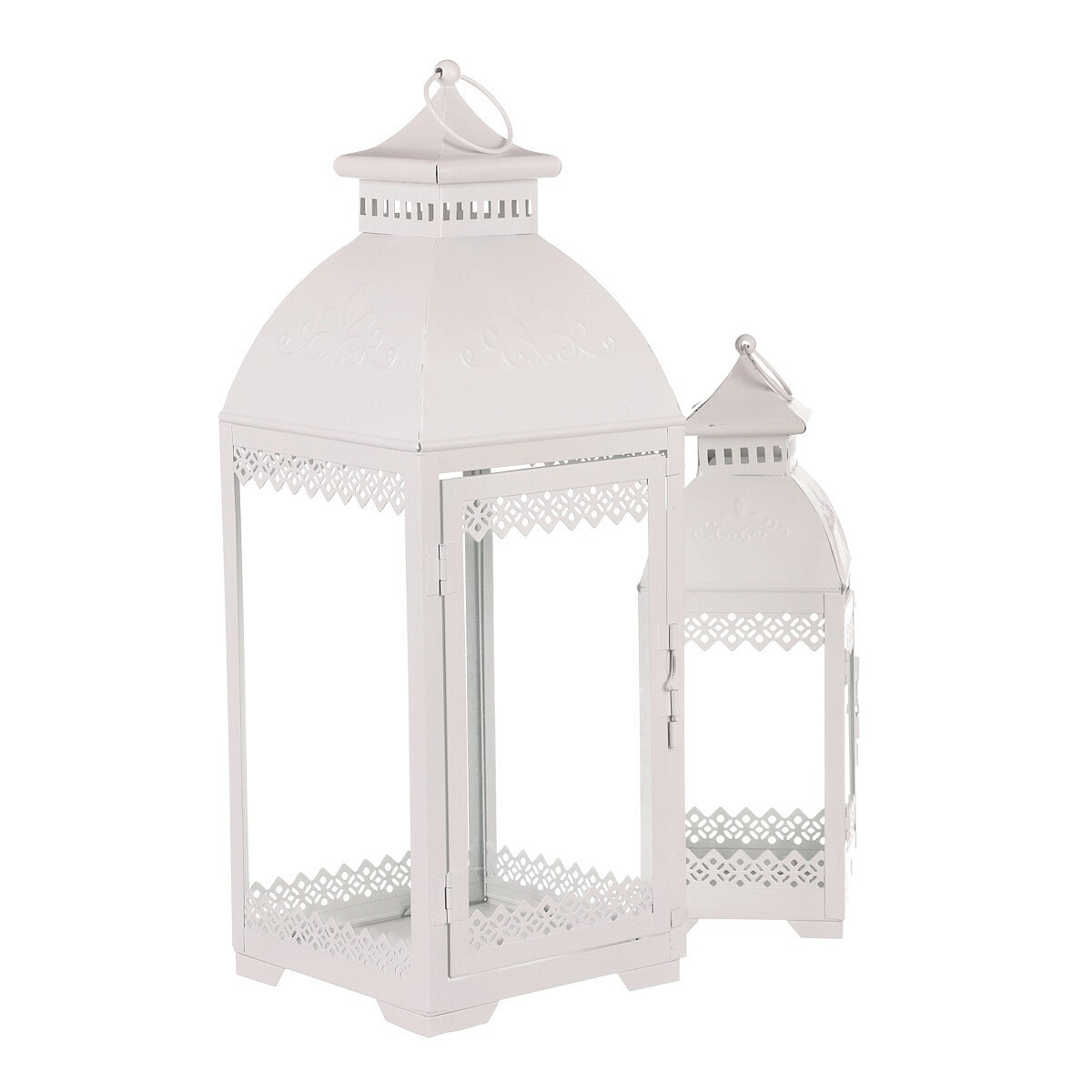 Lucerna kovová - čtyřboká, bílá, cena za sadu 2 ks
