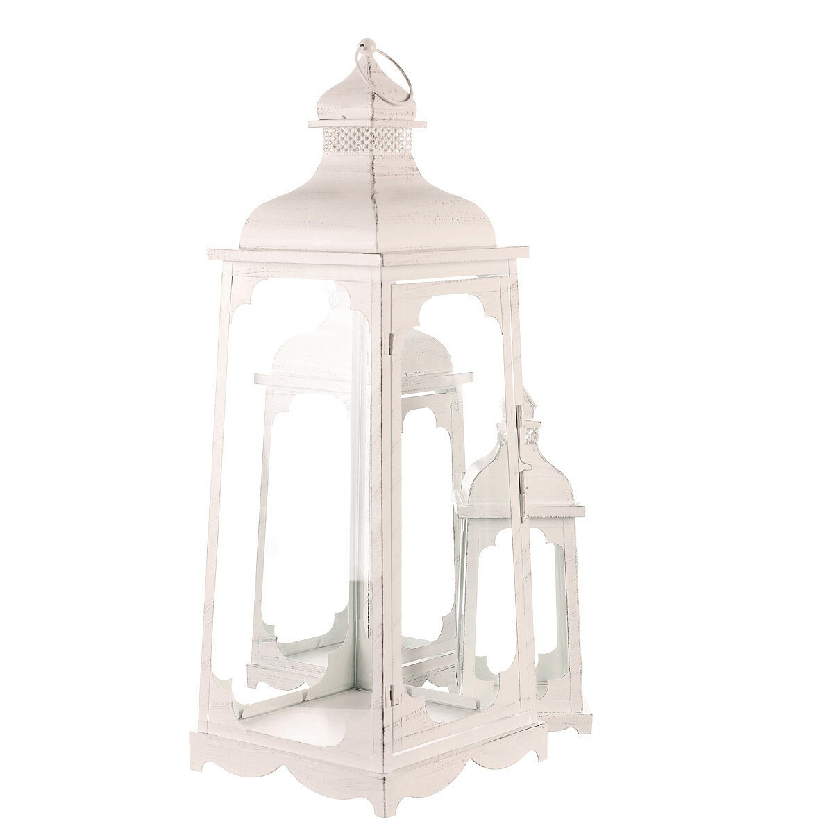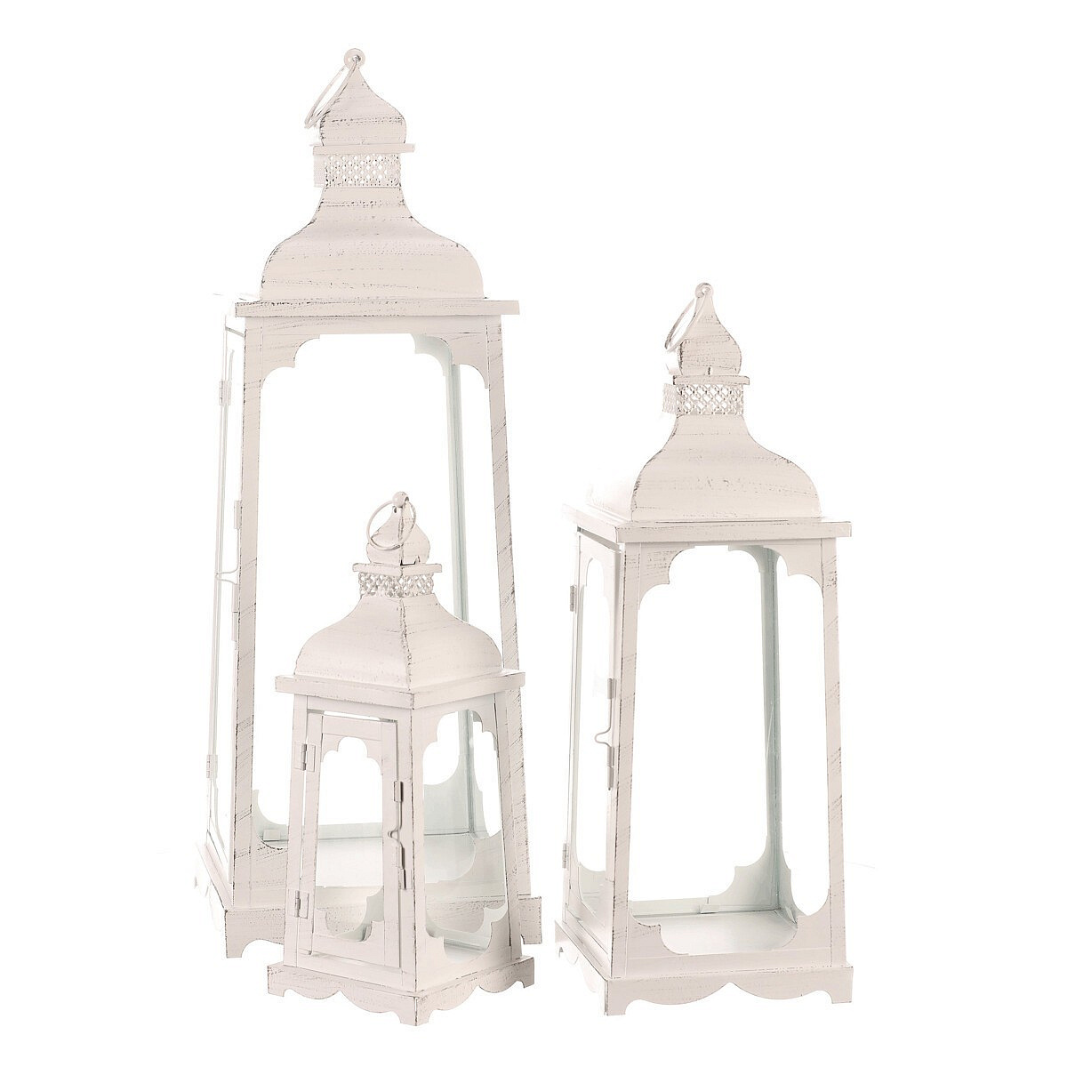 Navoďte si atmosféru plné romantiky a pohody s naší sadou kovových čtyřbokých luceren v bílých barvách. Sestává se ze tří různých velikostí, každá s čirým sklem ze všech stran, které umožňuje, aby se světlo svíčky rozprostíralo po celém okolí. Dvířka na jedné straně umožňují snadný přístup k vložení svíčky. Každá lucerna je shora vybavena kroužkem, který umožňuje její bezpečné zavěšení. Lze ji i postavit, a to na libovolné místo, jako jsou terasy, altánky, pergoly a další viditelné pozice. Už jen vyčkat, až přijde soumrak, a můžete si vychutnat nádherný světelný efekt, který vytvoří plápolající plamínek svíčky uvnitř.