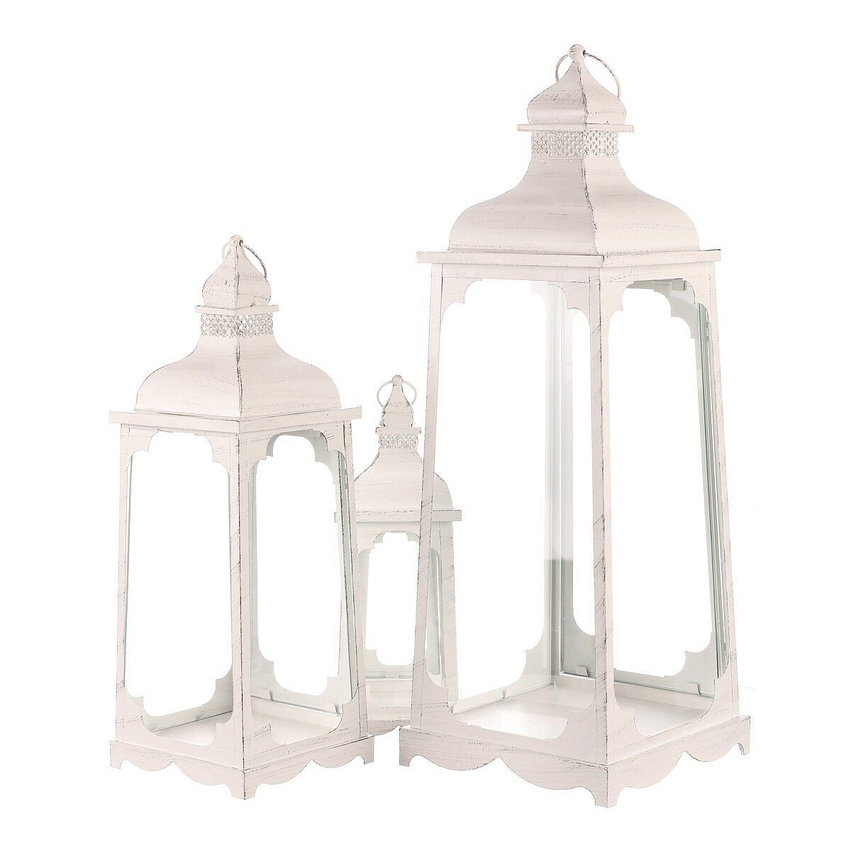 Lucerna kovová - čtyřboká, bílá, cena za sadu 3 ks