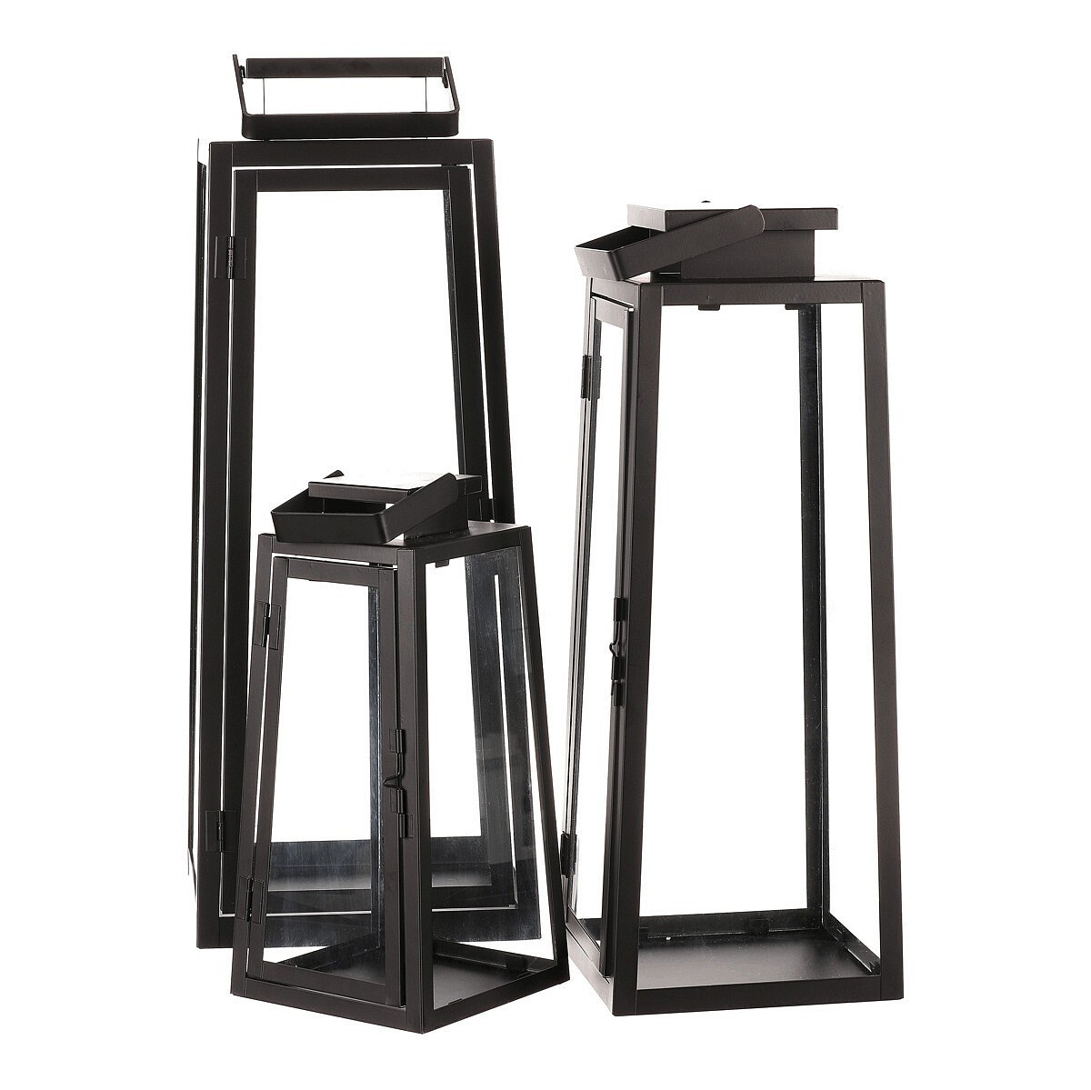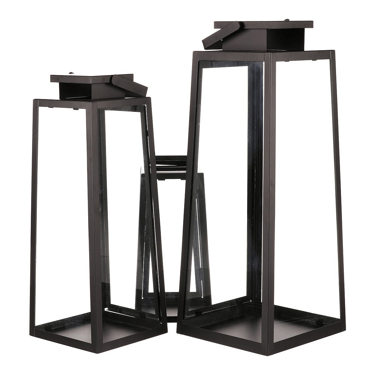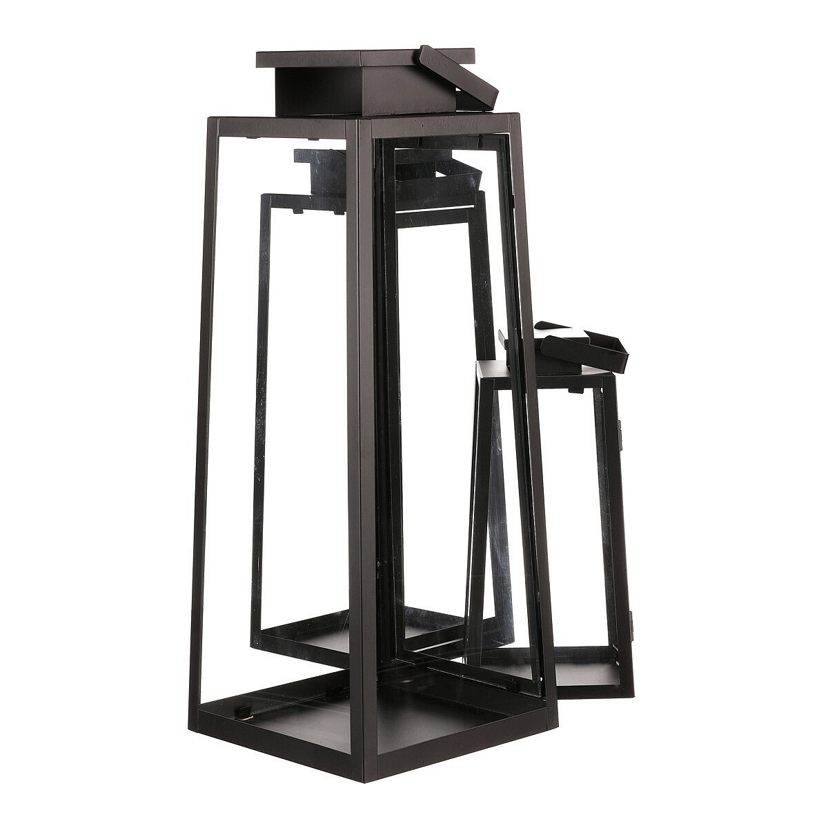 Lucerna kovová - čtyřboká, černá, cena za sadu 3 ks