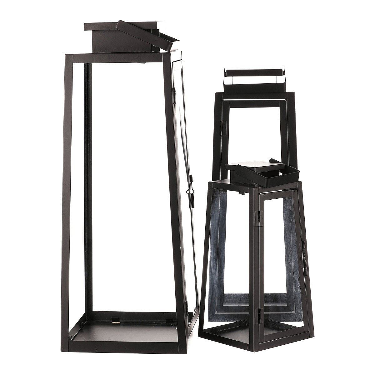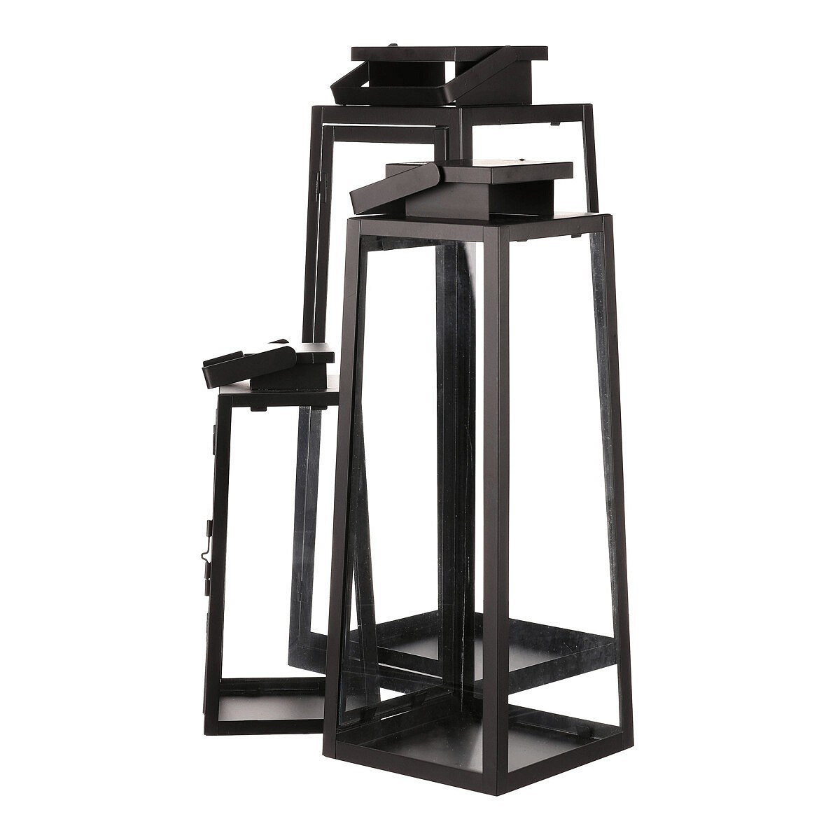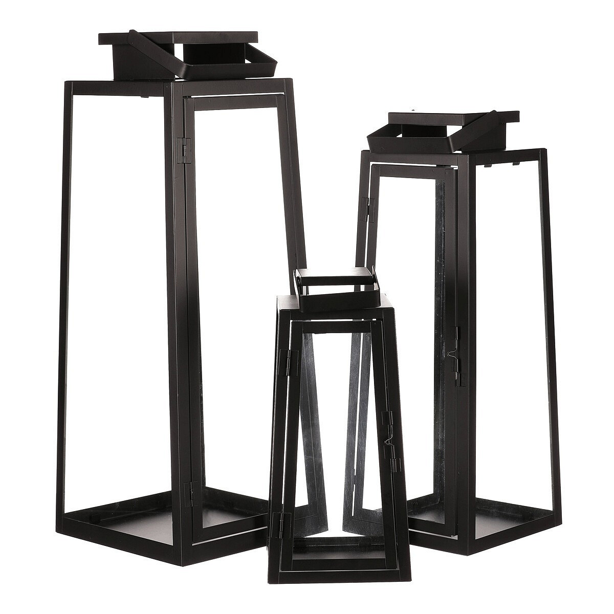 Lucerna kovová - čtyřboká, černá, cena za sadu 3 ks