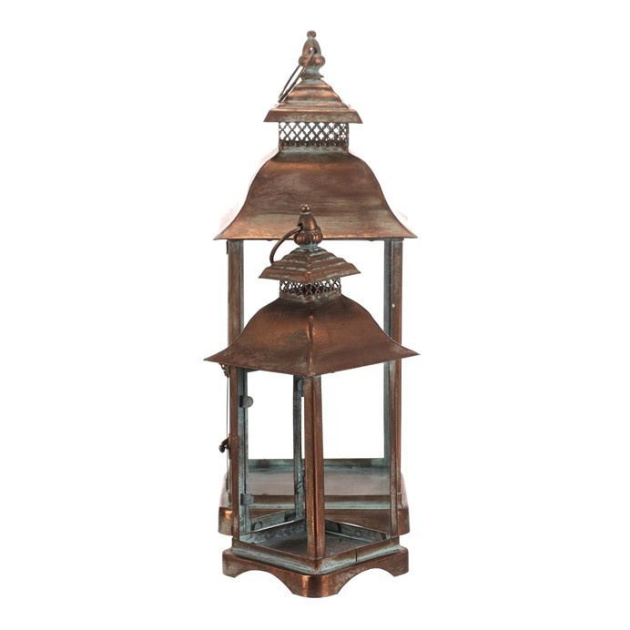 Lucerna kovová - čtyřboká, měděná, cena za sadu 2 ks
