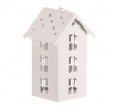 Mini kovová lucerna ve tvaru patrového domku je půvabnou dekorací pro váš interiér. Bílá barva jí dodává jemný vzhled, zatímco detailně zpracovaná okénka a hvězdičkové otvory ve stříšce krásně propouštějí světlo LED svíčky. Můžete ji postavit na stůl nebo zavěsit za očko a vytvořit si tak kouzelnou atmosféru.