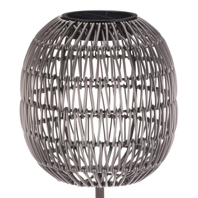 Lampión na zápichu v černém provedení je vyroben z odolného polyratanu, který věrně napodobuje přírodní ratanovou strukturu a snadno se udržuje. Kulatý tvar lampiónu vytváří zajímavý vizuální efekt díky proplétanému designu, který umožňuje decentní rozptyl světla. LED osvětlení zajišťuje příjemnou atmosféru a nízkou spotřebu energie. Díky zápichu je lampión vhodný pro venkovní použití v zahradách, na terasách či balkonech, kde snadno zapadne do přírodního prostředí. LED osvětlení je napájeno 1 x AA dobíjecí baterií a zároveň solárním panelem umístěným na horní hraně.