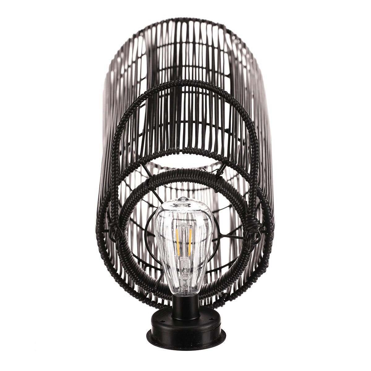 Lucerna - umělý ratan, sloupcová, LED osvětl., vel. L, šedo-černá