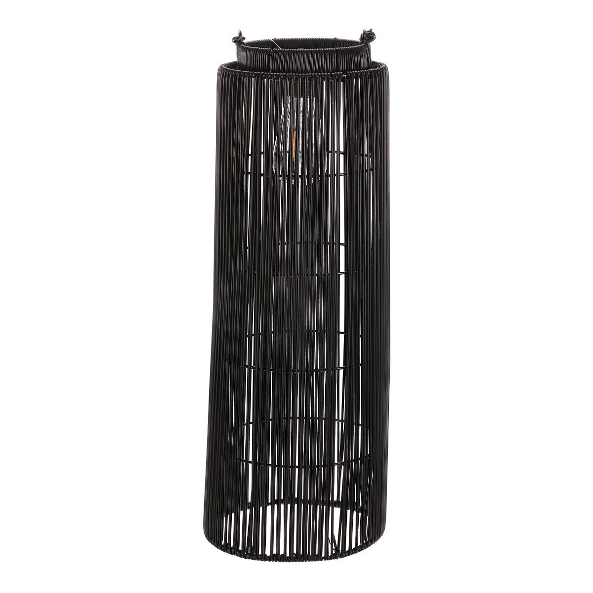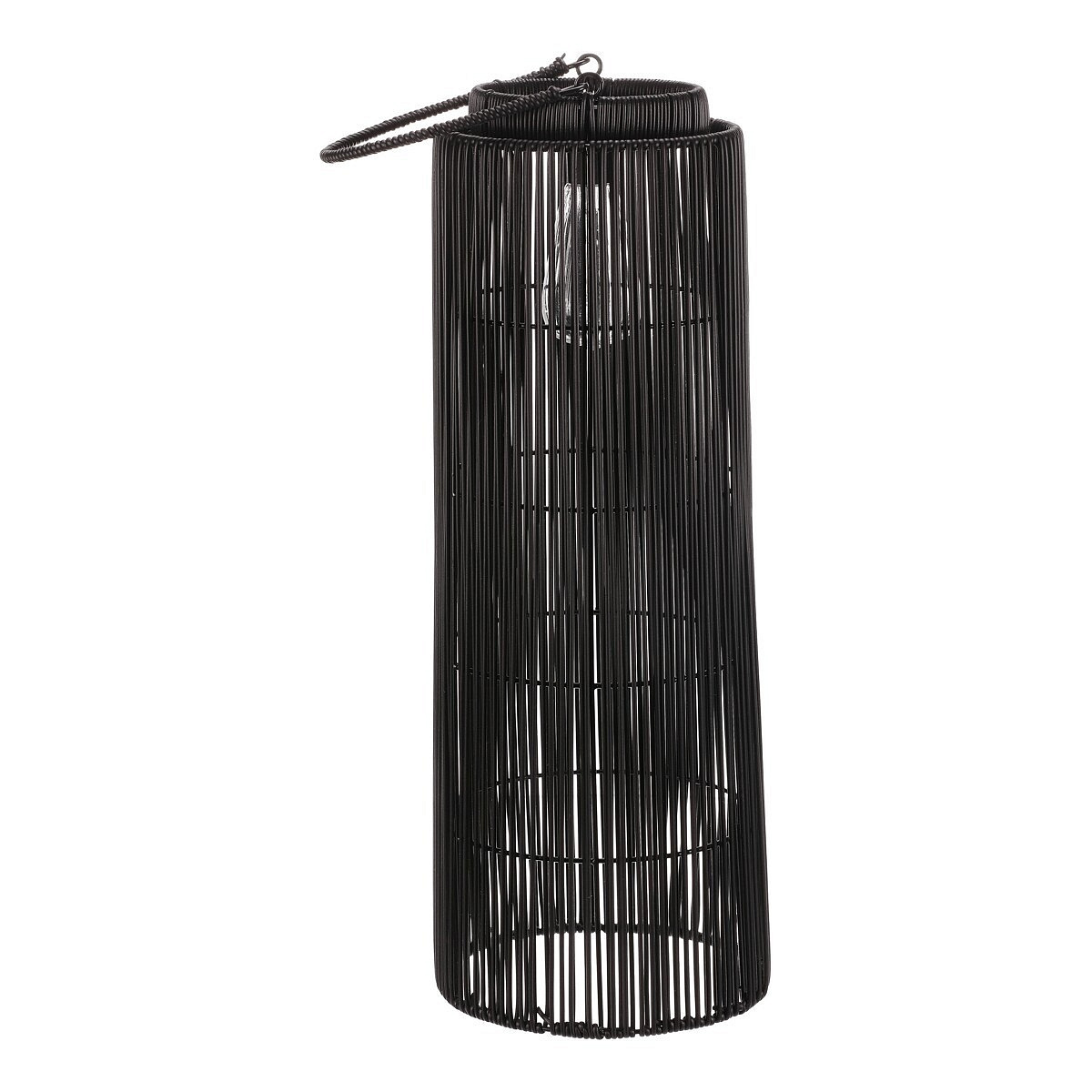 Lampión ve tvaru sloupce je vyrobený z odolného polyratanu v kombinaci šedých a černých odstínů, které dodávají moderní a přitom přirozený vzhled. Jeho otevřené provedení umožňuje efektivní rozptýlení LED osvětlení uvnitř, které vytváří příjemnou atmosféru. Praktické madlo usnadňuje přenášení nebo zavěšení lampiónu. Díky použití polyratanu je lampión vhodný pro venkovní i vnitřní použití a materiál se snadno udržuje. Velikost L zajišťuje výrazný vizuální efekt a dostatečné osvětlení prostoru. LED osvětlení je napájeno 1 x AA dobíjecí baterií a zároveň solárním panelem umístěným na horní hraně.