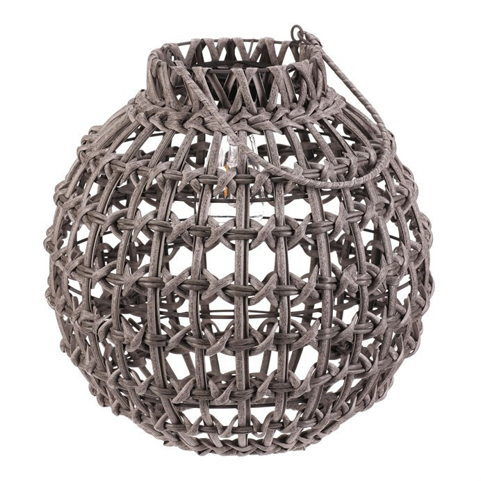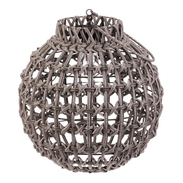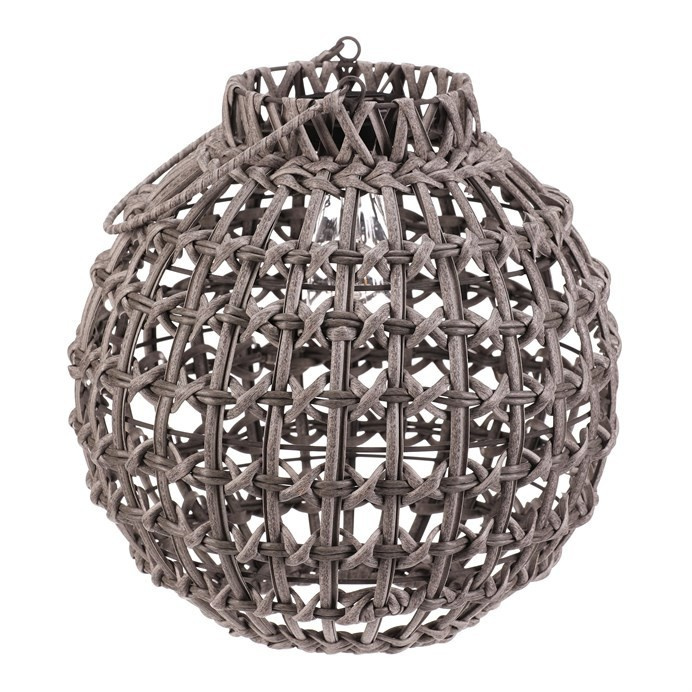 Lucerna z polyratanu - tvar koule, LED osvětl., vel. L, šedá