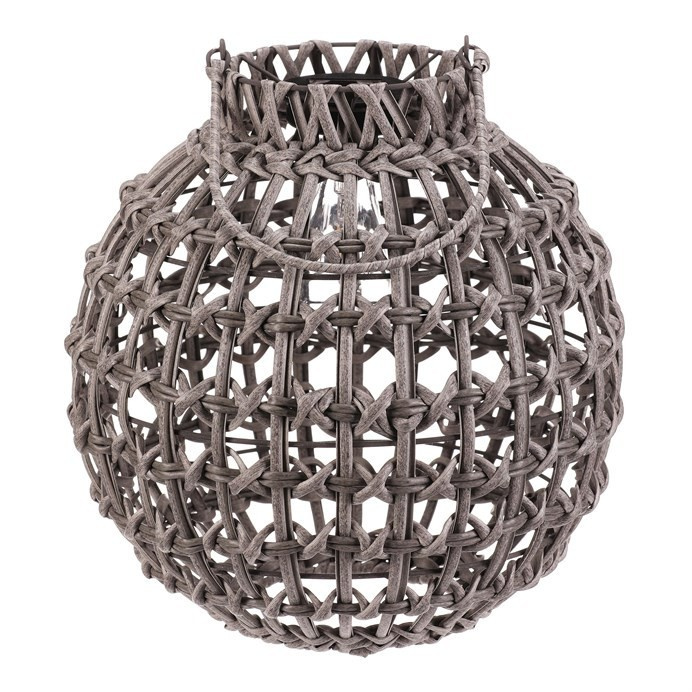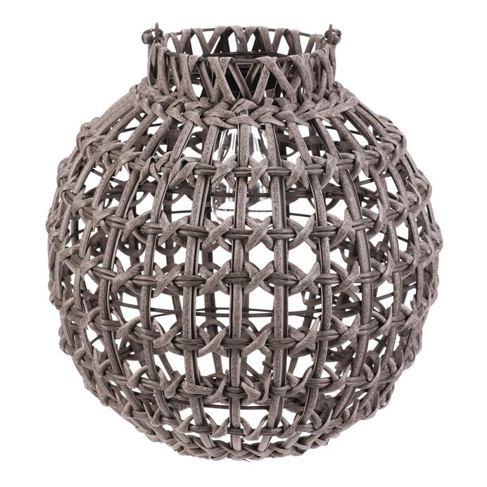 Lampión z polyratanu v šedém odstínu má kulatý tvar a je vybaven LED osvětlením, které vytváří příjemnou atmosféru. Propletené provedení dodává dekoraci lehkost a zajímavou texturu, zatímco vnitřní LED světlo zajišťuje efektivní a úsporné osvětlení. Díky praktickému držadlu je možné lampión snadno přenášet nebo zavěsit. Vhodný je pro venkovní i vnitřní použití, kde podtrhne stylové aranžmá prostoru. LED osvětlení je napájeno 1 x AA dobíjecí baterií a zároveň solárním panelem umístěným na horní hraně.