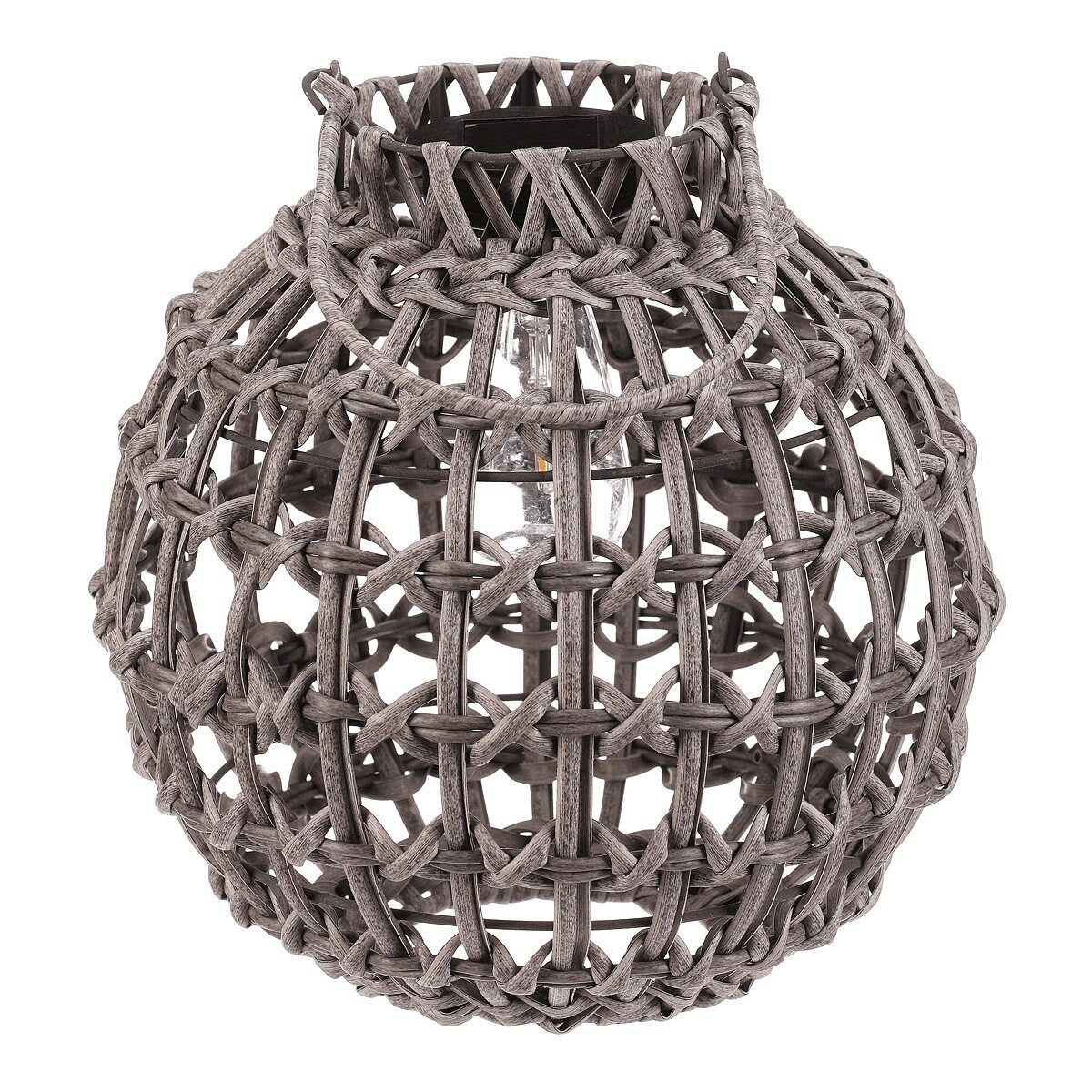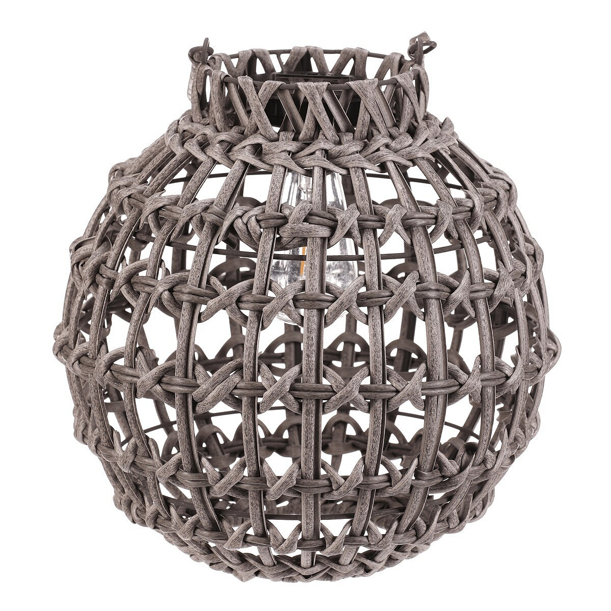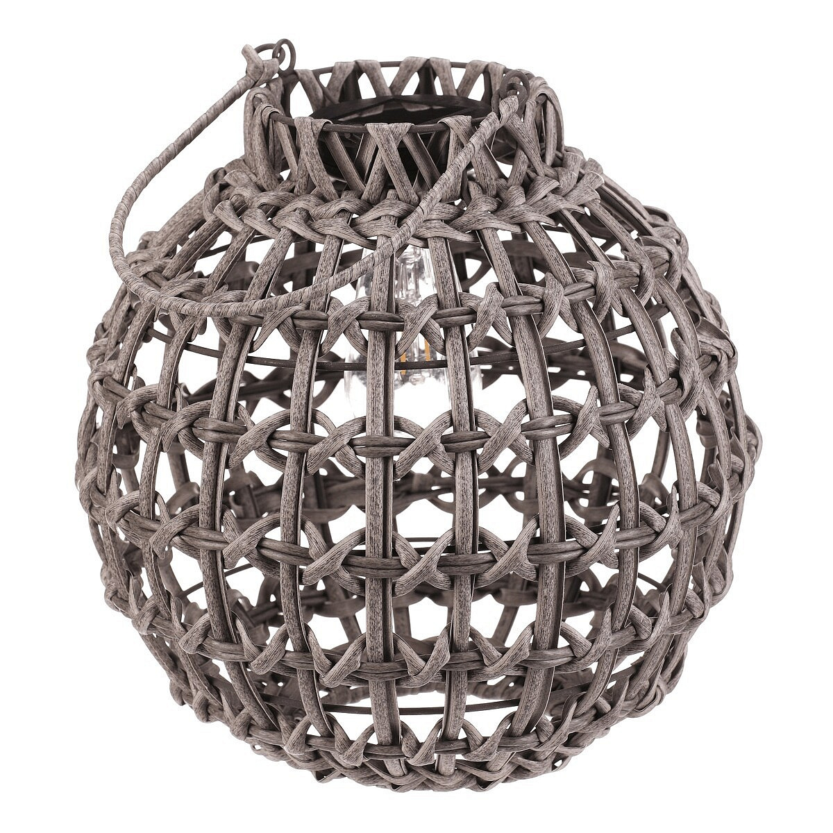 Lucerna - umělý ratan, kulatá, LED osvětl., vel. M, šedá