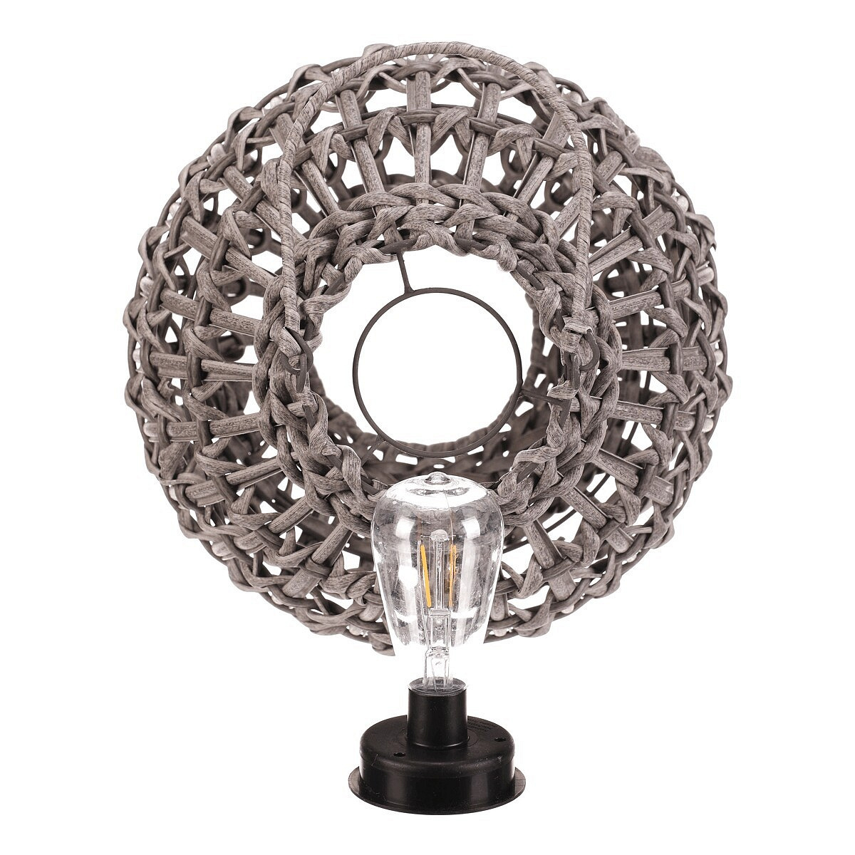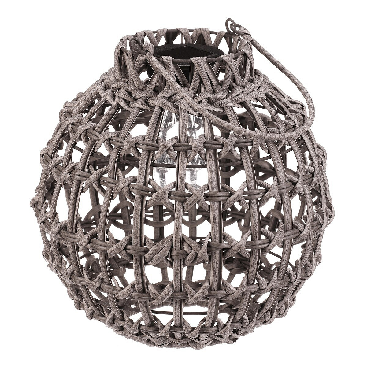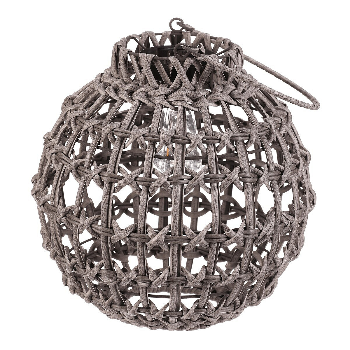 Lucerna - umělý ratan, kulatá, LED osvětl., vel. M, šedá