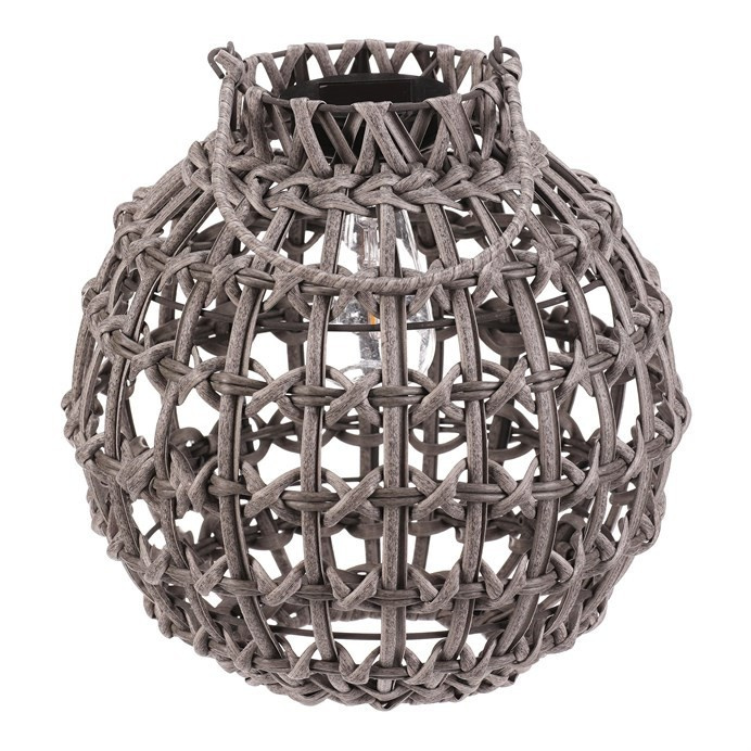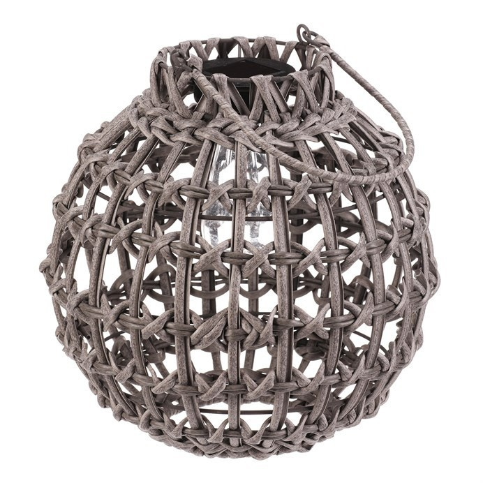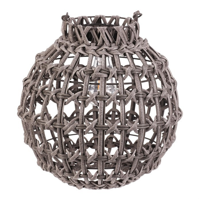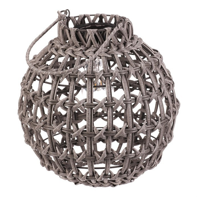 Lucerna z polyratanu - tvar koule, LED osvětl., vel. M, šedá