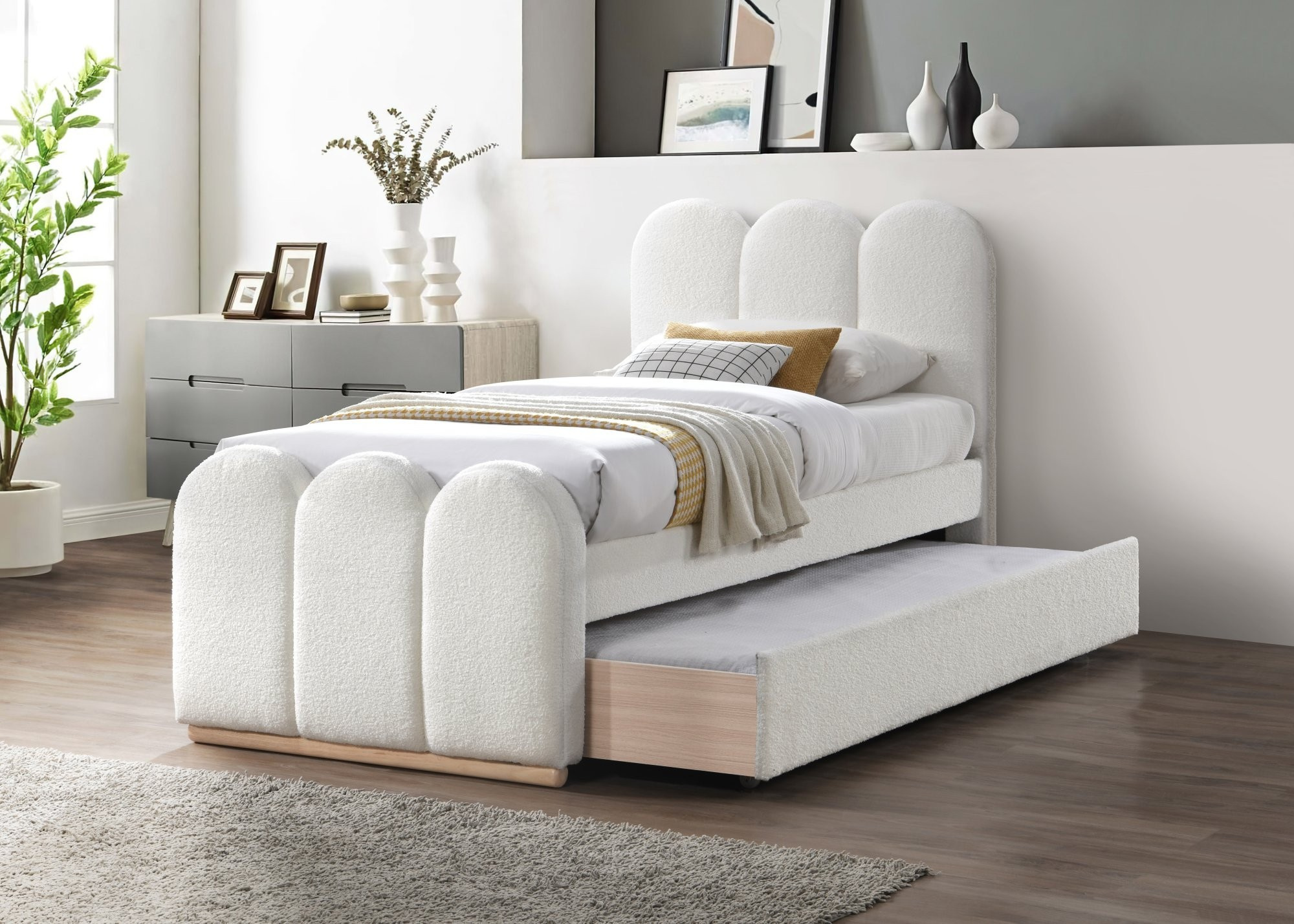 postel s výsuvnou spodní matrací, materiál: látka / masivní dřevo, barva: krémová, * postel bez matrace, volitelně matrace POLARIS 90 nebo SYRIUSZ 90