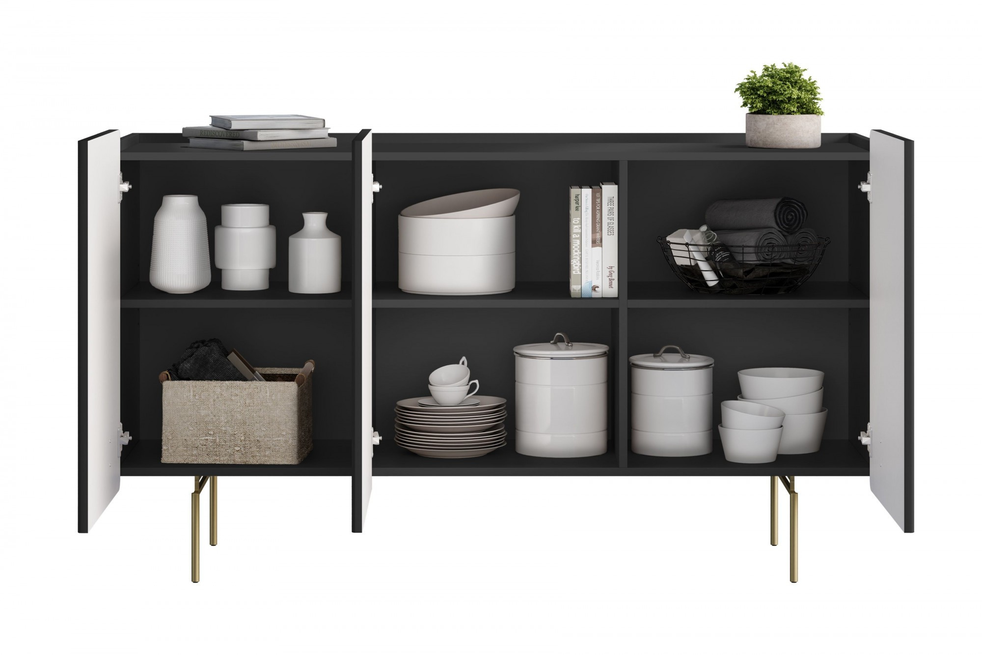 MALMI Komoda 150 3D - černá / zlaté nohy