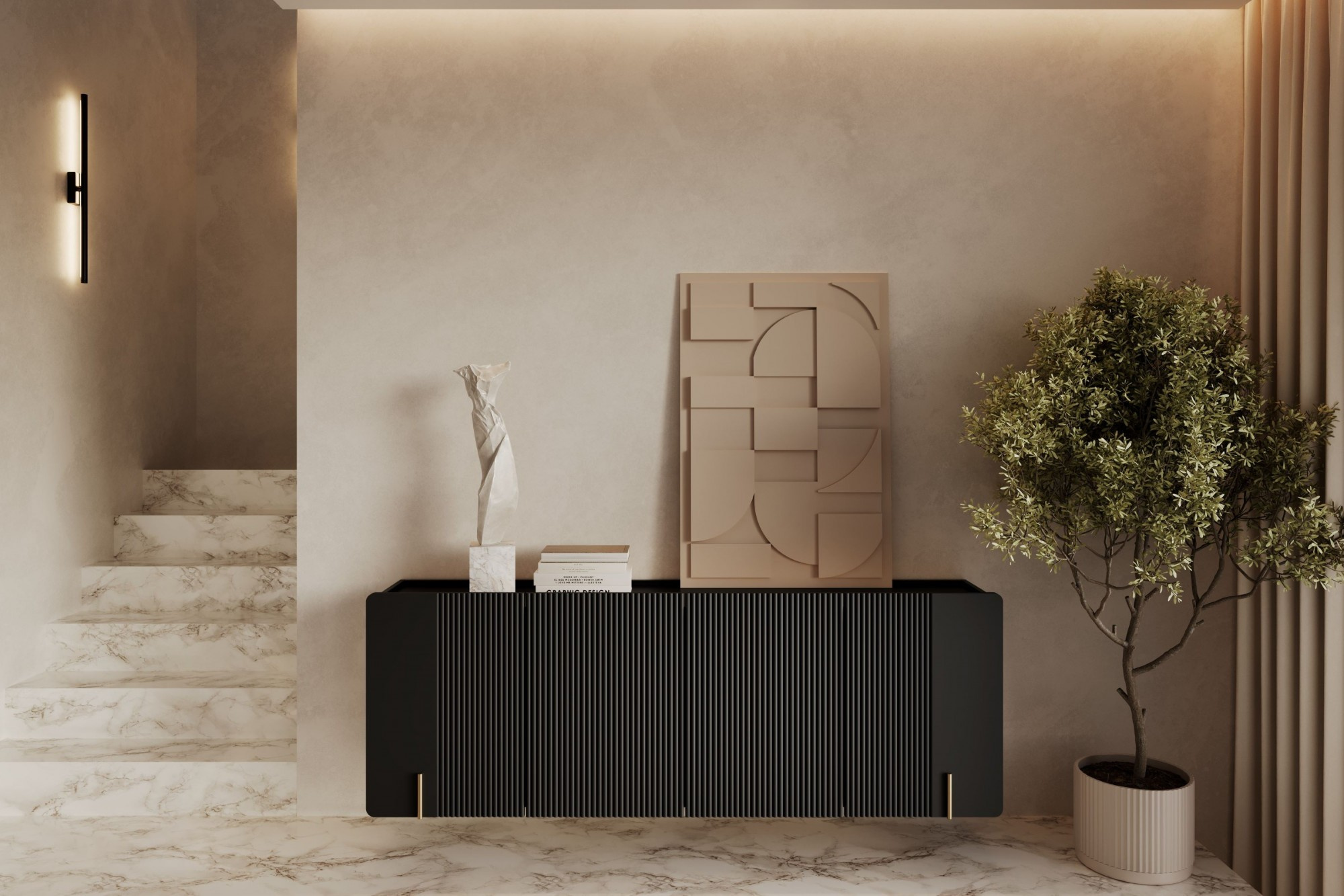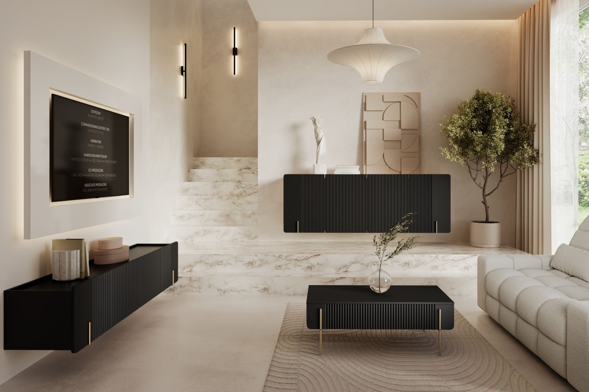MALMI Komoda 200 4D - černá / zlatá / závěsná