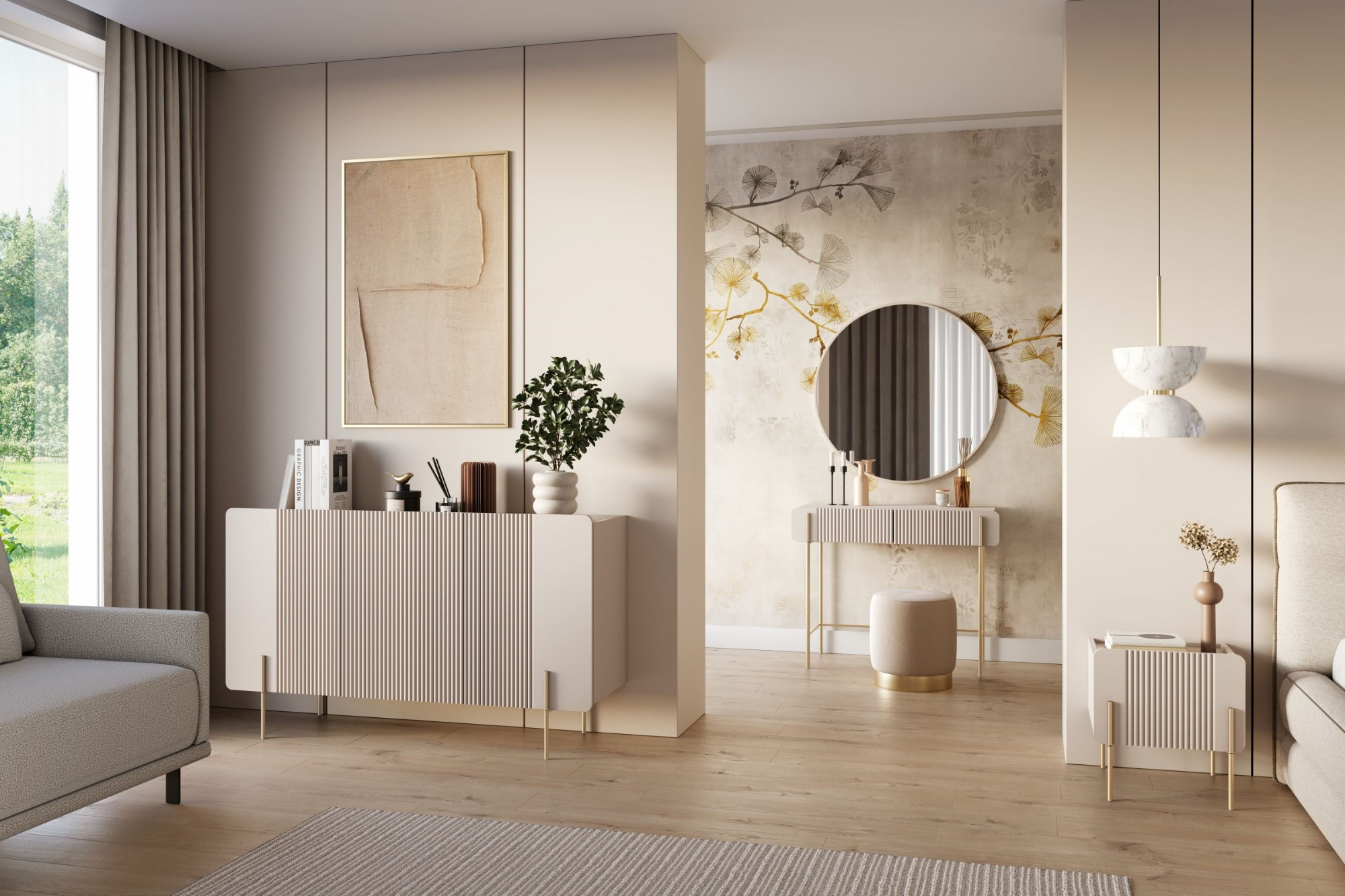 MALMI Toaletka 100 2SZ - kašmír / zlaté nohy