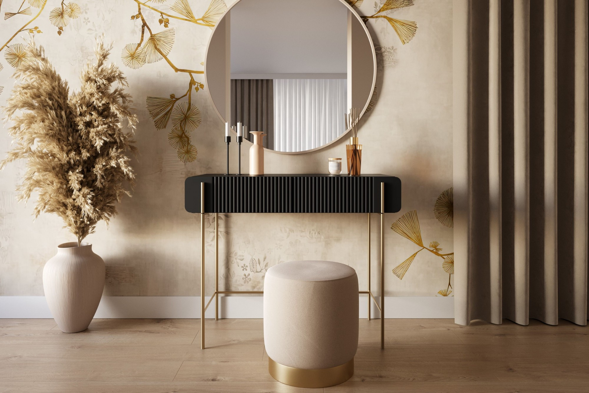 MALMI Toaletní stolek 100 2SZ - černý / zlaté nohy